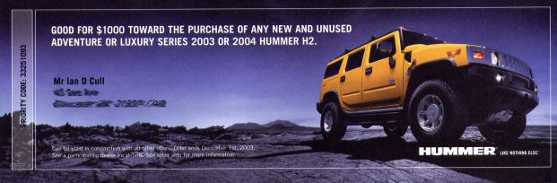 Hummer advert in the mail!
