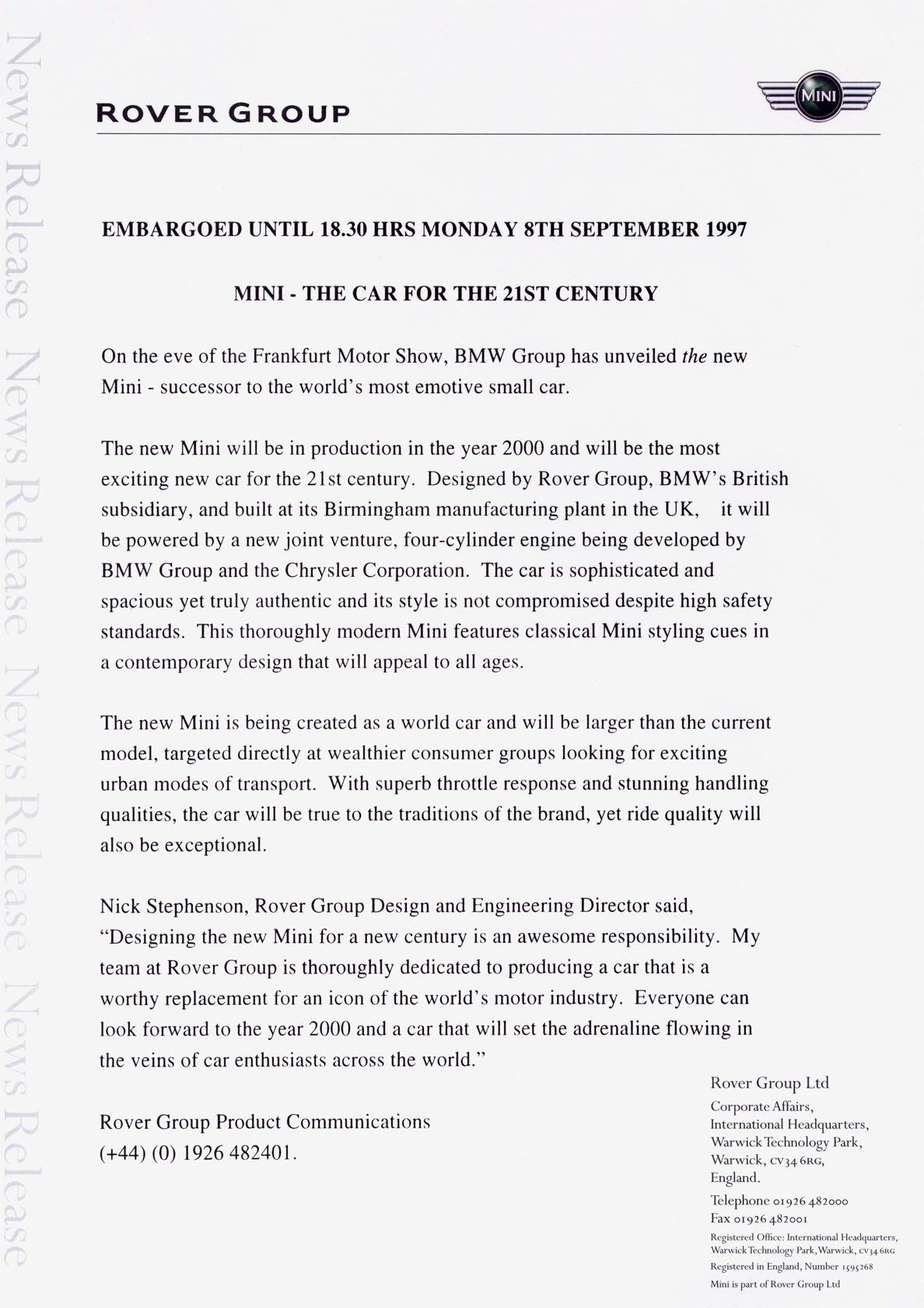 First MINI press release – 1997