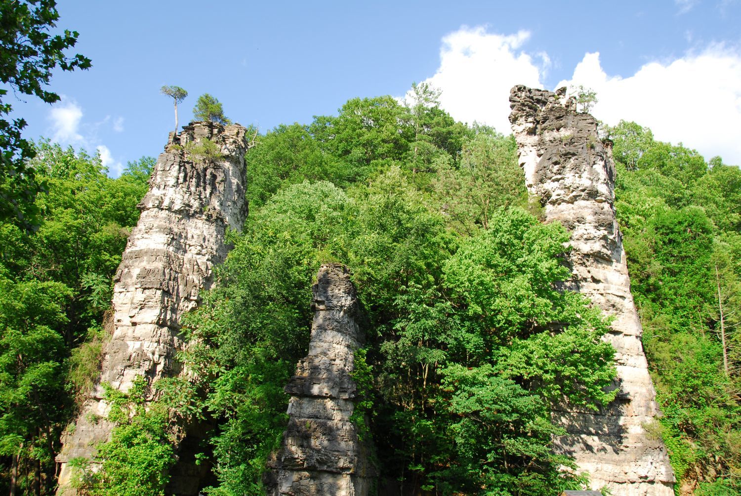In between today’s MINI run and tonight’s Ice Cream “festival” in Staunton, Virginia, we found a little time to make a quick visit to Natural Chimneys – a rock formation: