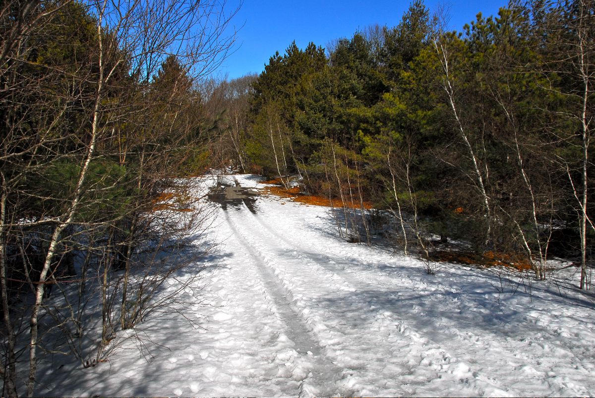 Goose Cove reservoir with snow