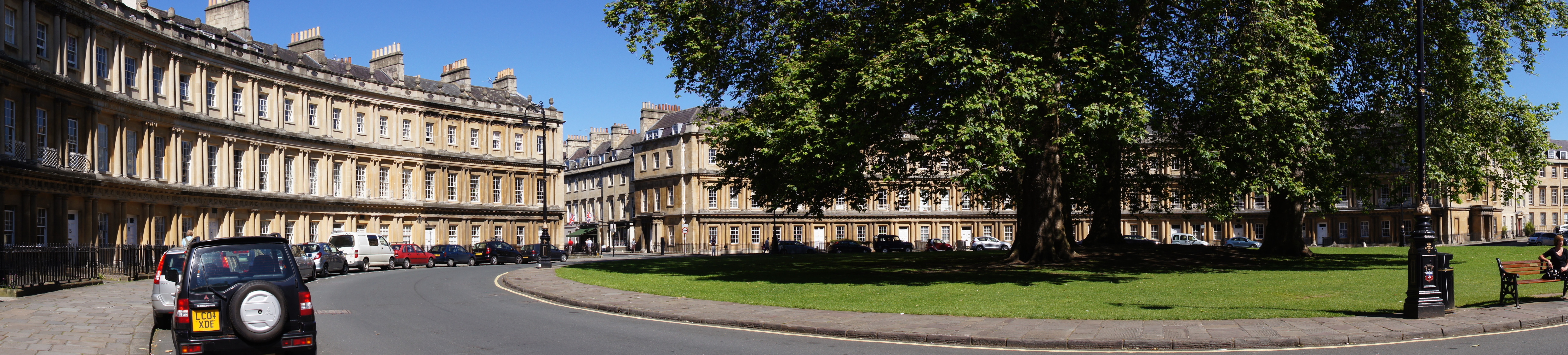 My favourite part of Bath is the Circus, a circular road with Georgian terraces all round and a green centre with trees – but most people say that the Royal Crescent is better … here’s a panorama of each so you can choose for yourself – be warned that full size is BIG!