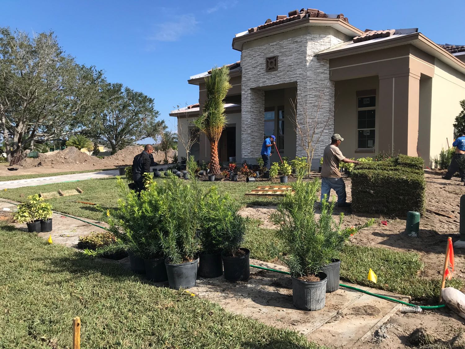 From the outside at least, our new home now has painted walls, completed stonework, driveway, and going in today plants and grass to finish the front view!