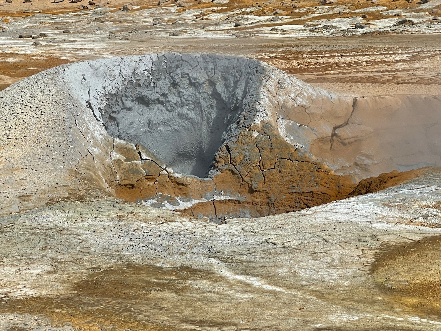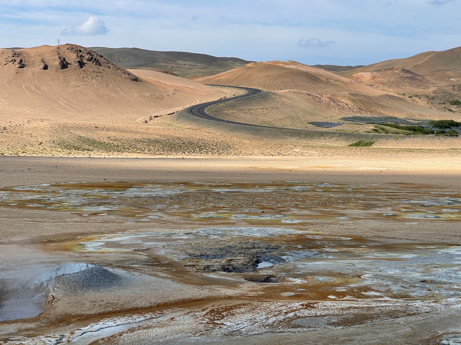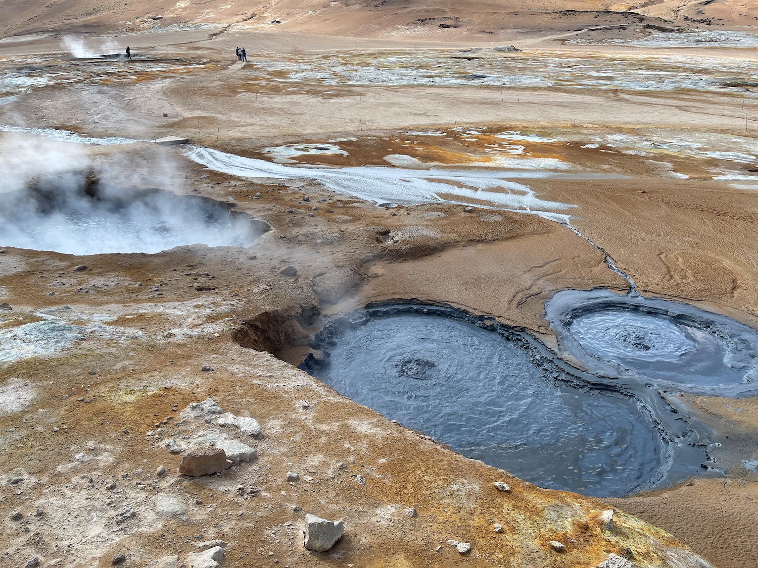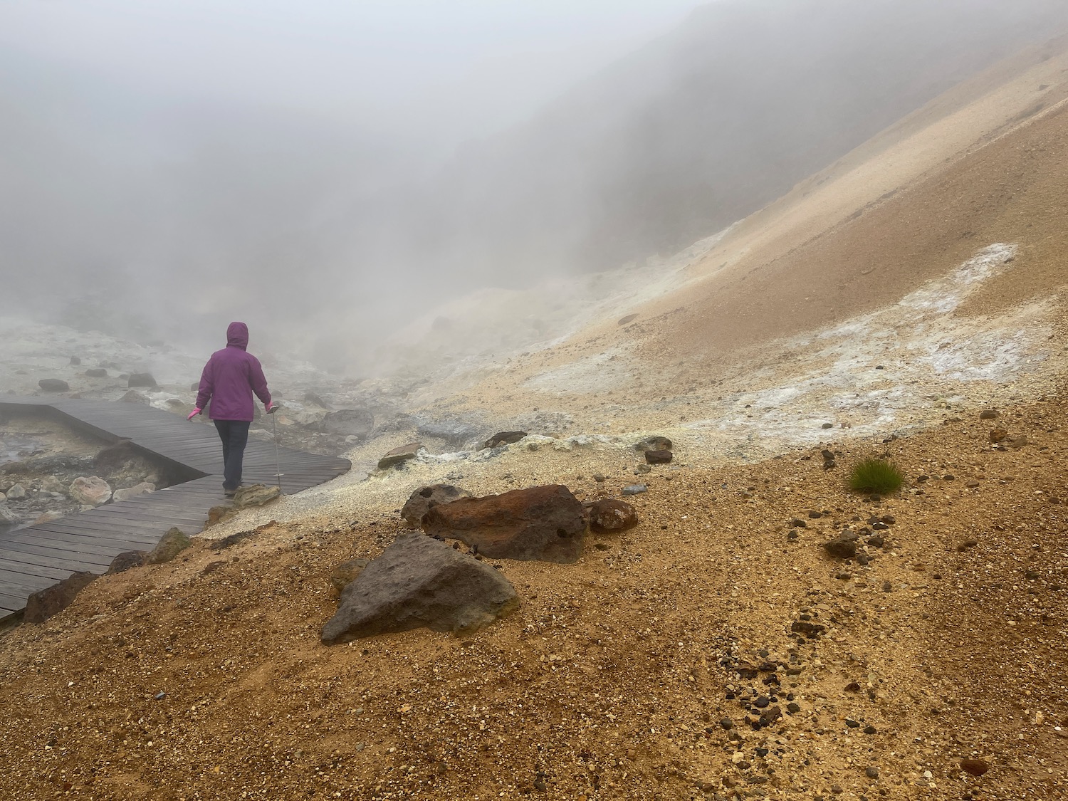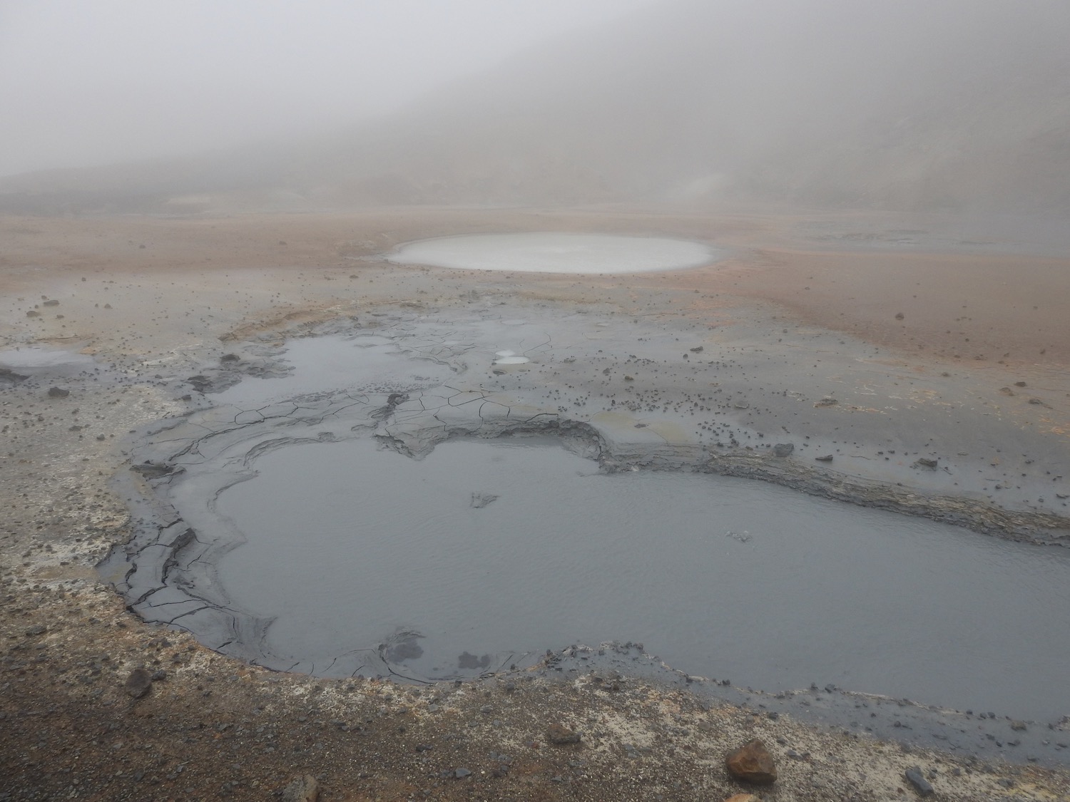 There’s a lot of heat under Iceland and it shows itself in some places as hot springs / bubbling mud … we visited a couple of places on our trip, the first is very thick fog!