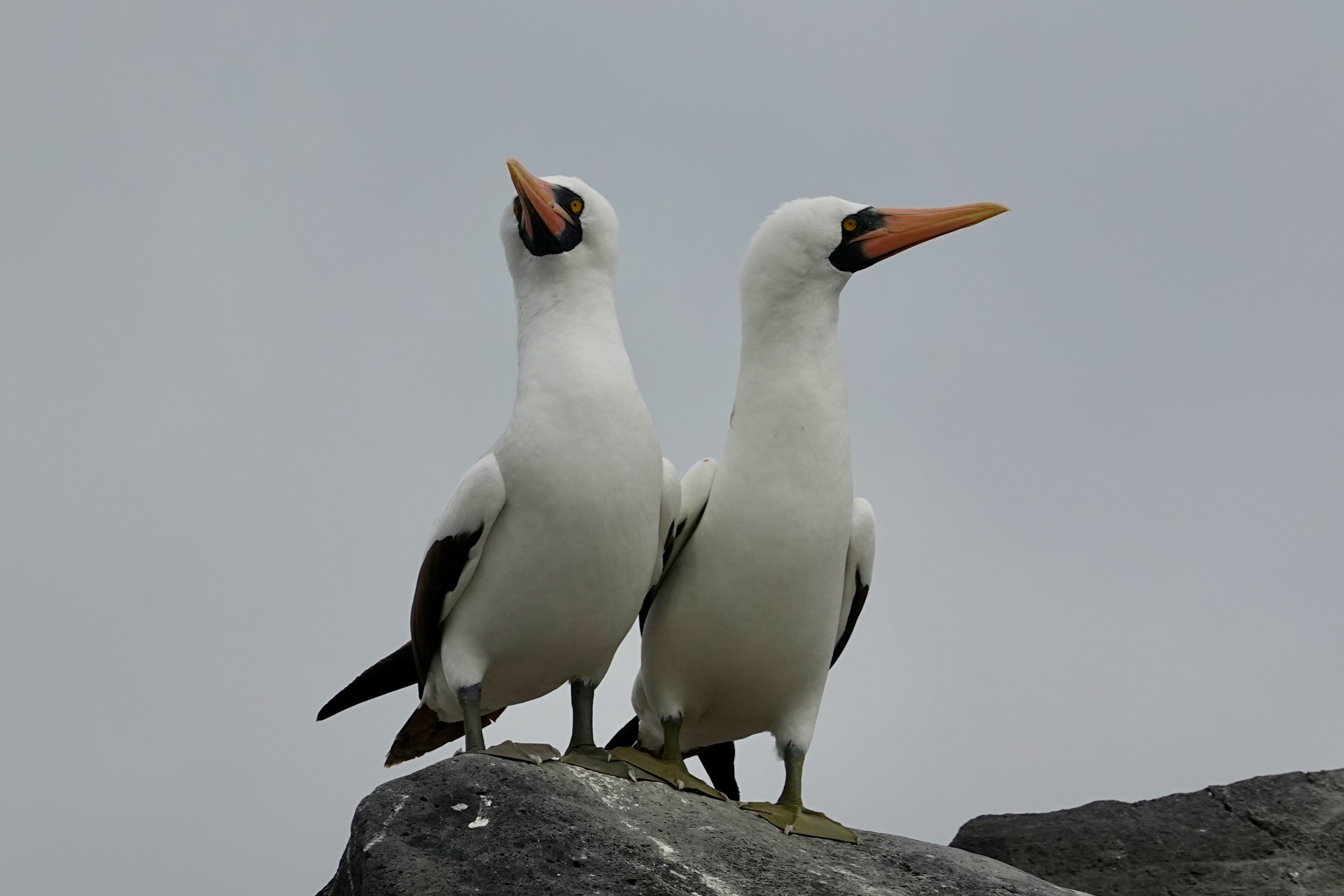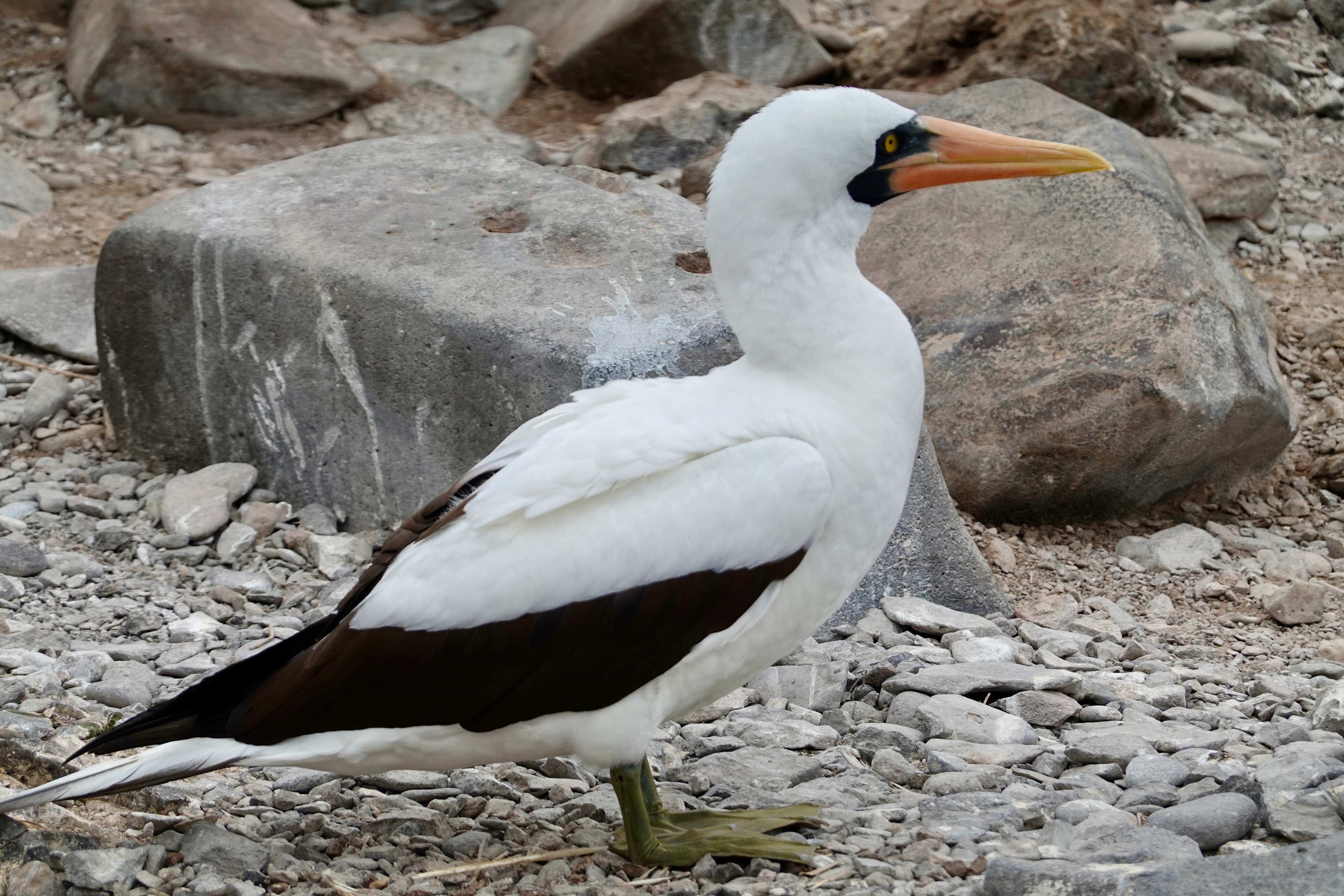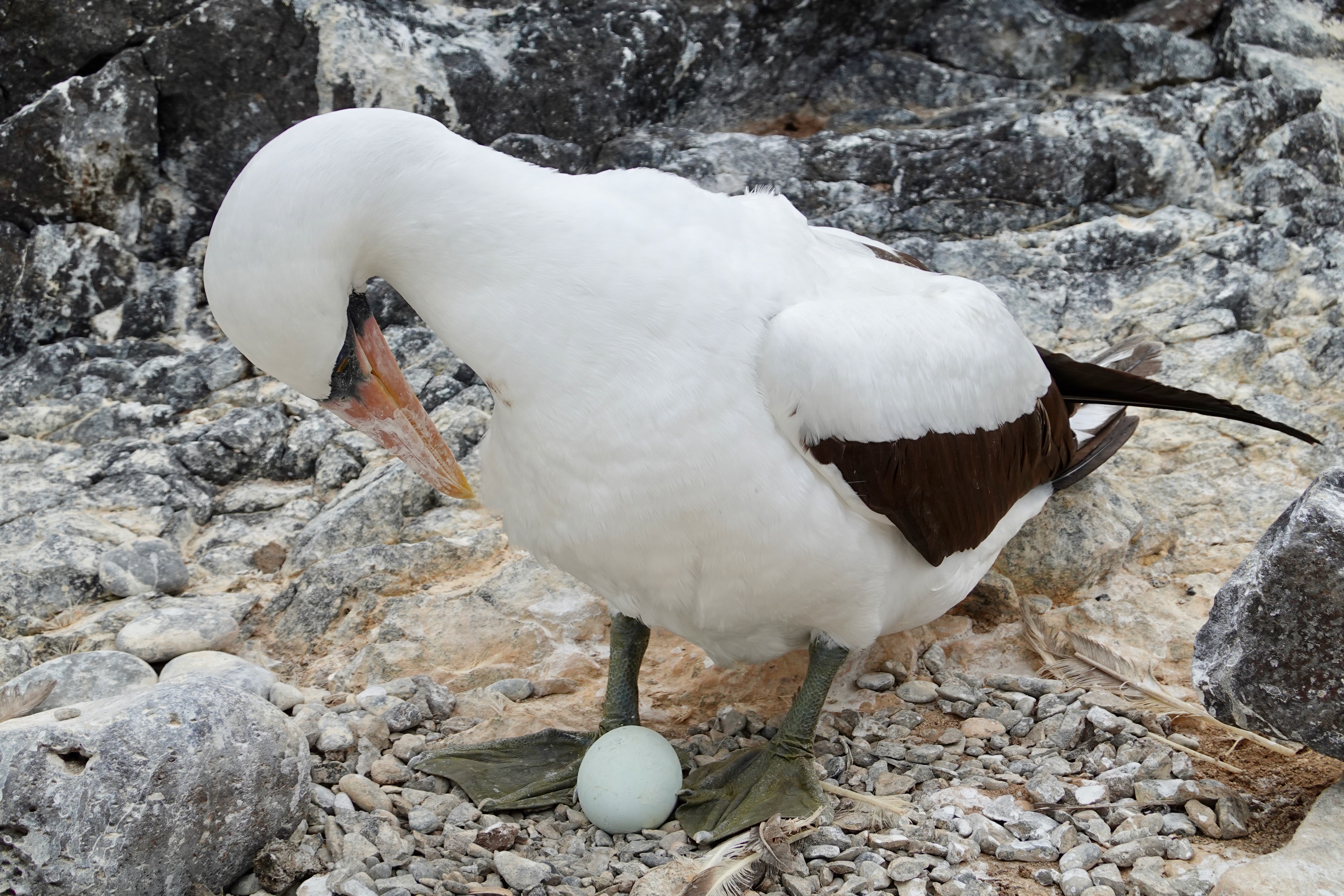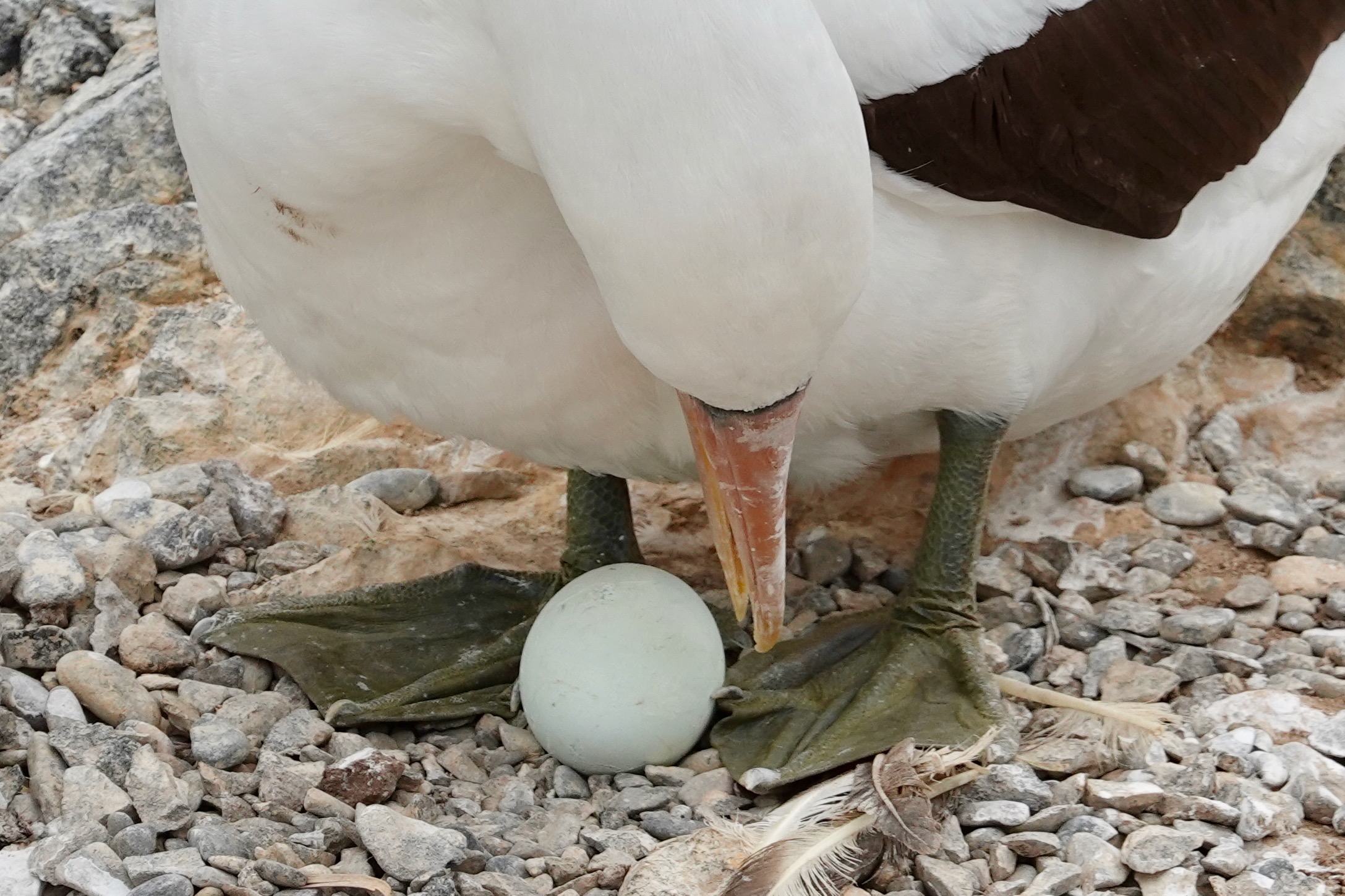 Many birds too including an occasional Blue Footed Boobie and many more Nazca Boobies (with no special foot color); also our first sighting of a Galapagos Hawk, and Albatrosses including a young one testing its wings:
