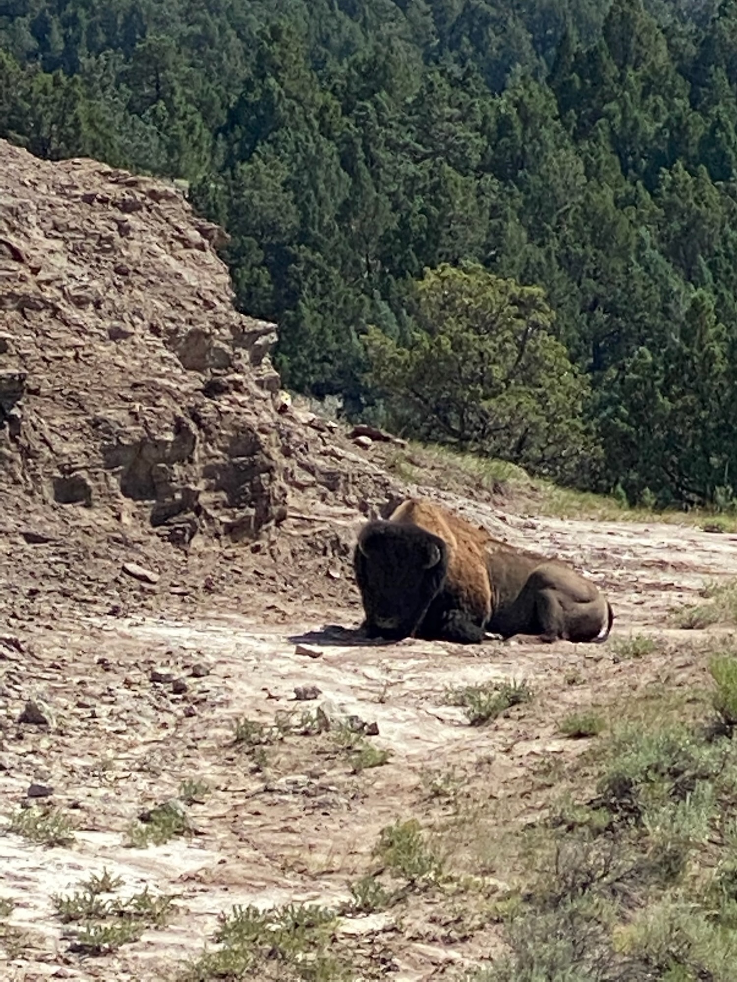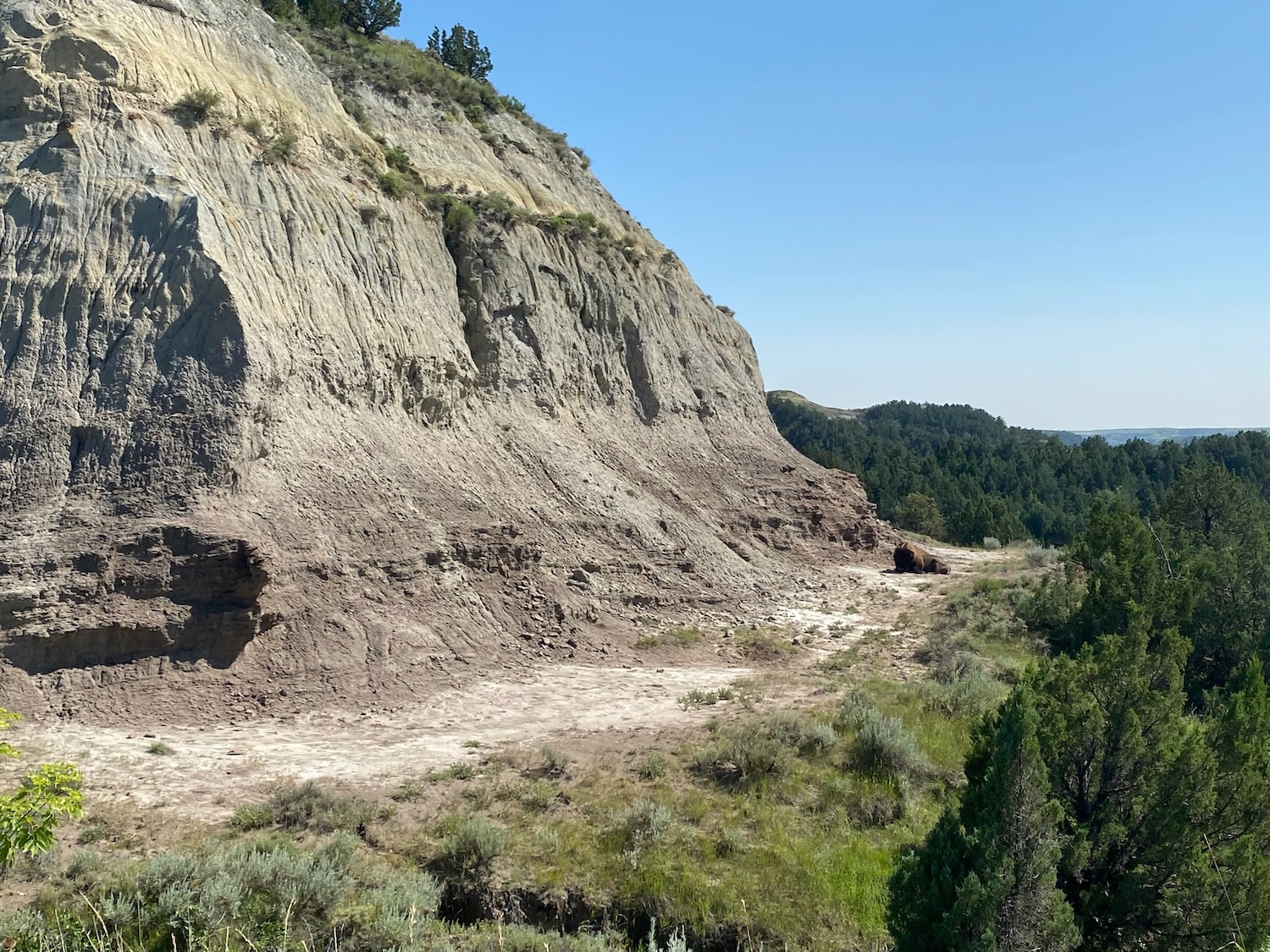 This park is split into two unconnected halves; the south half is easier to get to (close to I-94) but for me much less spectacular! So a few photos from the south park, including one of two Bison we saw …