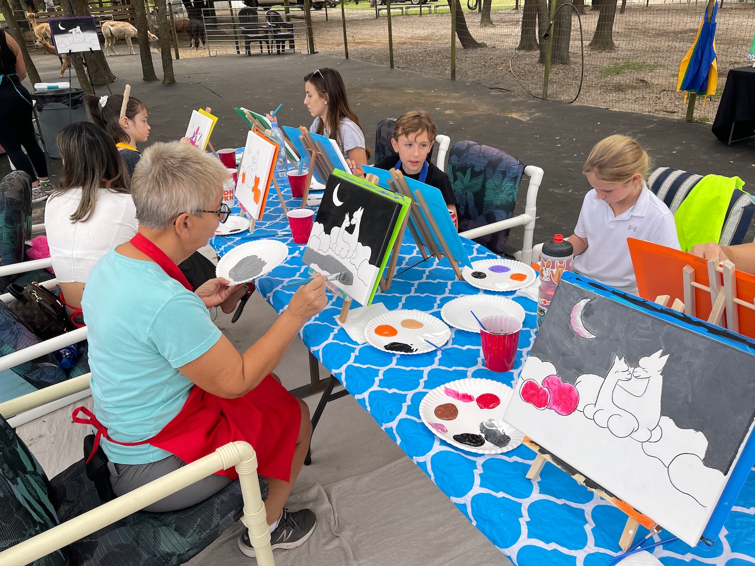 Today though we went for their recently introduced Painting With Alpacas class and of course had fun again! The painting is guided, and pauses a few times to interact with (and feed) the Alpacas; we spent a total of about two hours there …