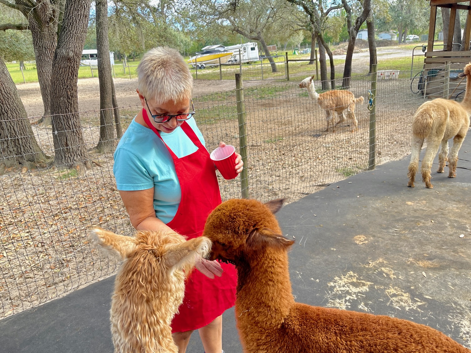 We’ve been to nearby Lunasea Alpaca Farm a few times since discovering them in 2019, enjoying an interactive tour and learning about the animals – and feeding them too!