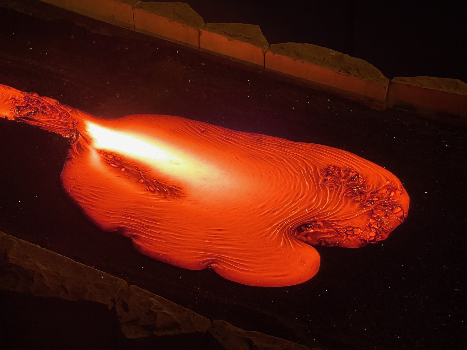 And in Vik we visited a Lava Show where real lava is made (by melting down rocks from lava fields); it was amazingly hot when they poured the lava into the exhibit room! The last pic is of the furnace that takes about five hours to get the rock up to liquid temperature …