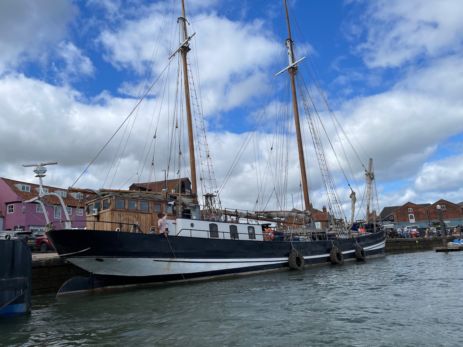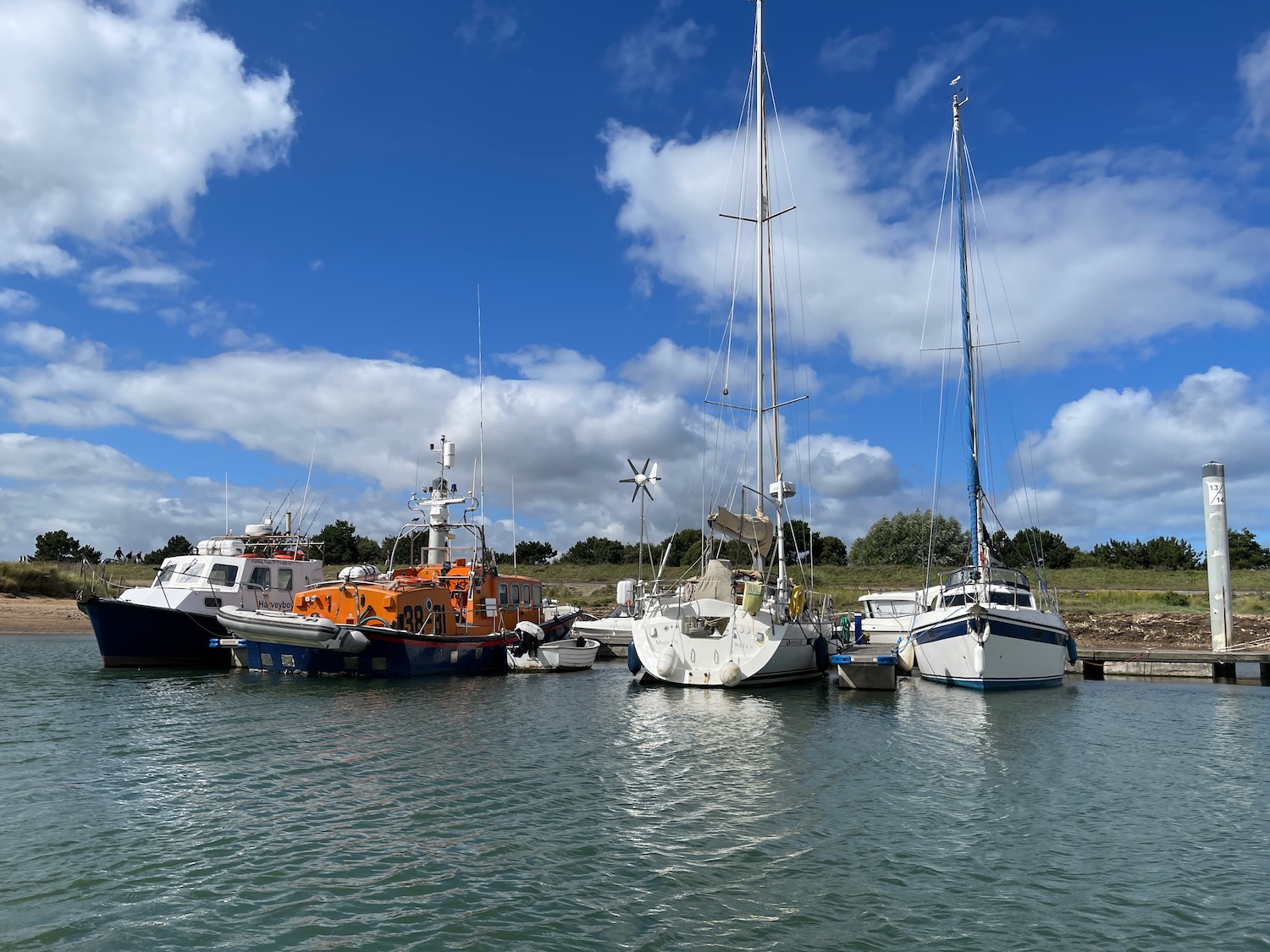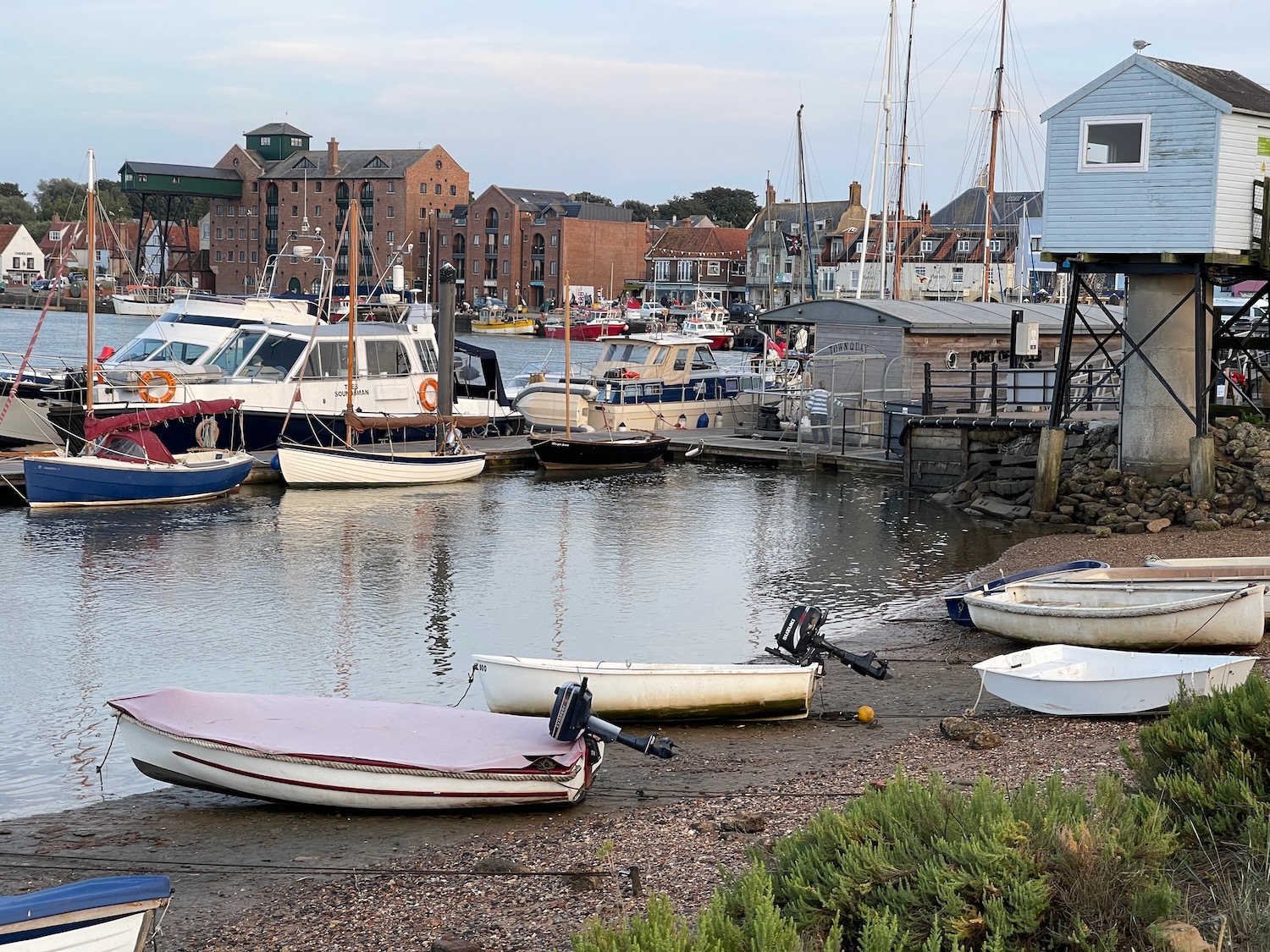 With Margaret’s sister Kate and brother Mark, we spent some time at this north Norfolk seaside town, staying right above a fish-and-chip shop and with nice views over the harbor. We walked out (a surprisingly long way) to the beach with colorful beach huts, and we took a harbor boat trip … we did also of course eat fish and chips!