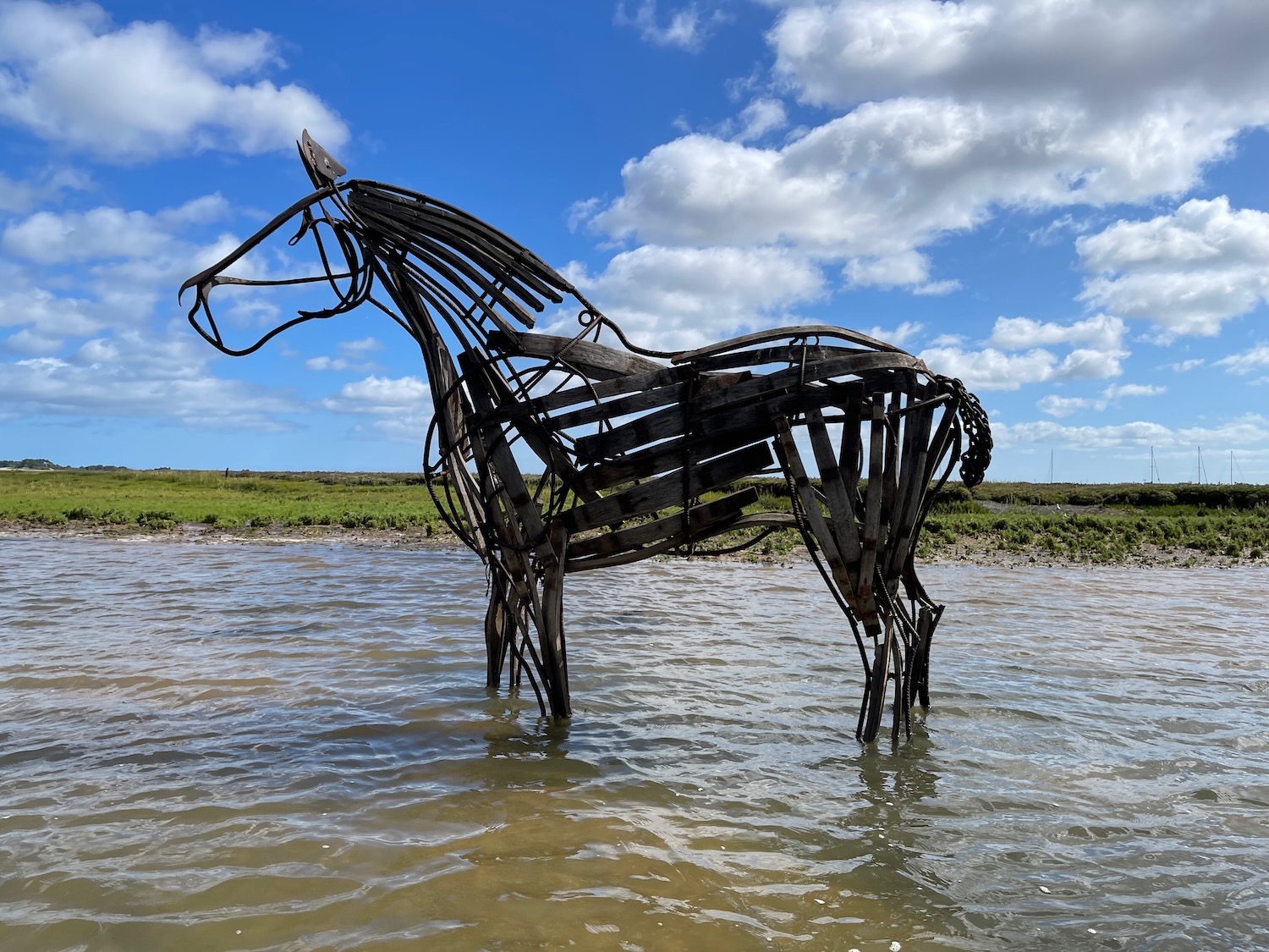 The tide is huge here, perhaps 10ft from low to high – the horse sculpture is half drowned at high tide, and high above water at low tide!