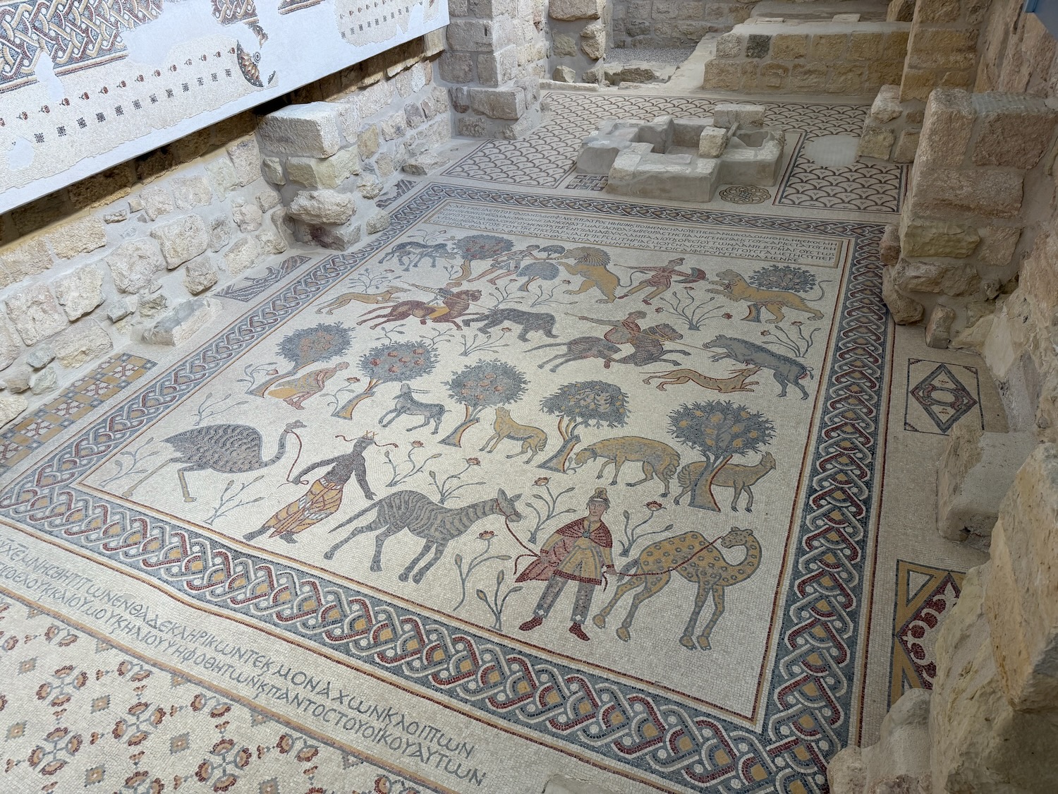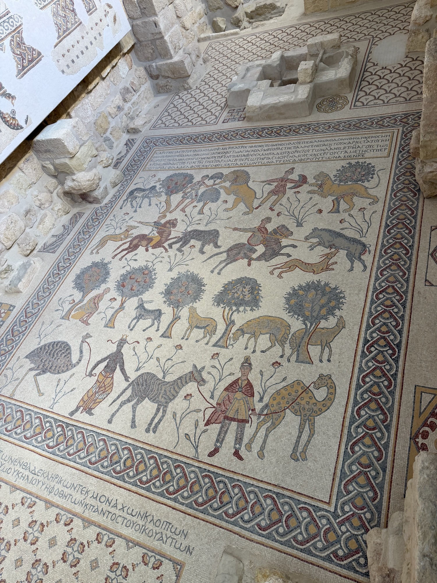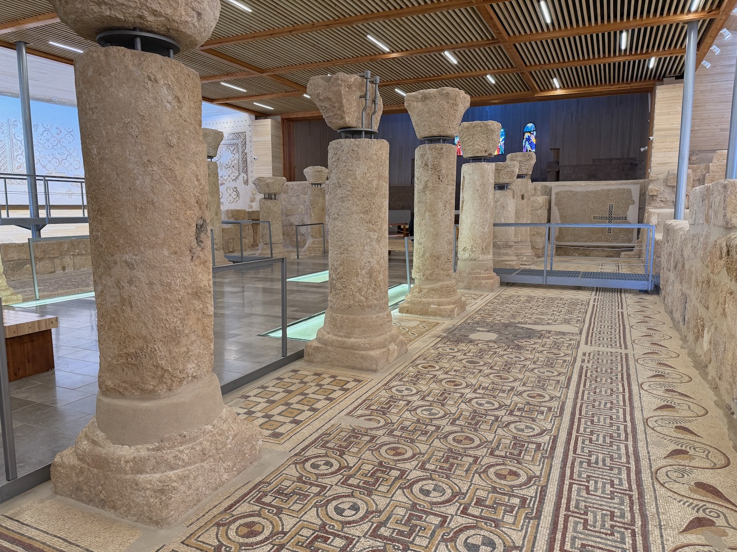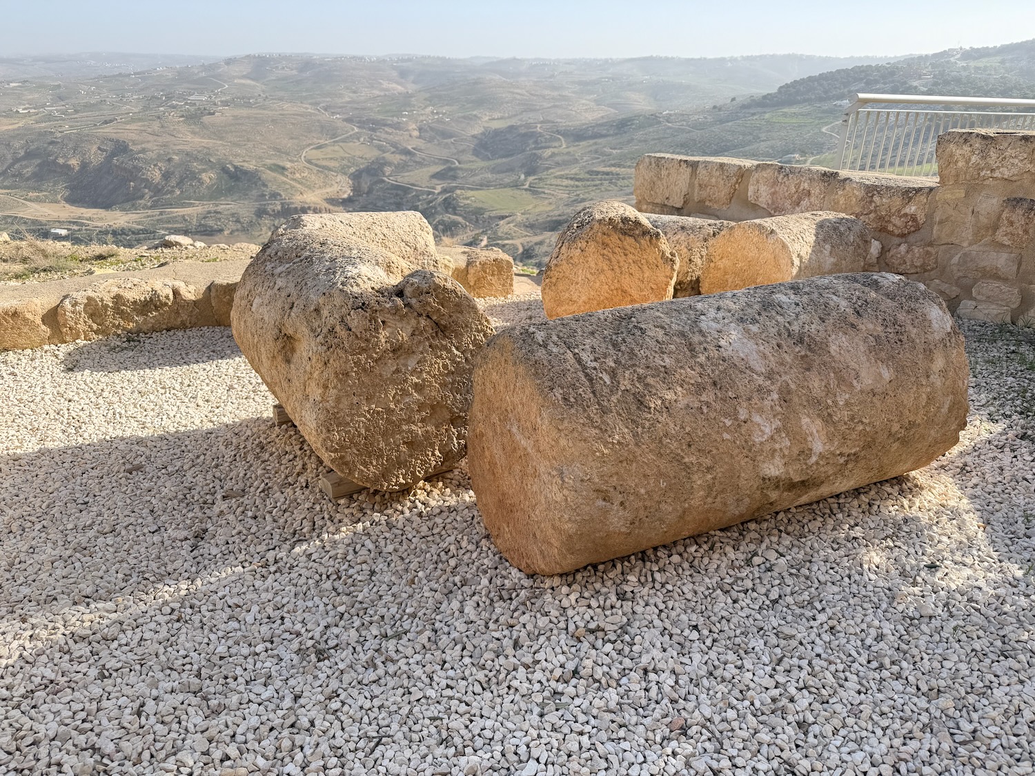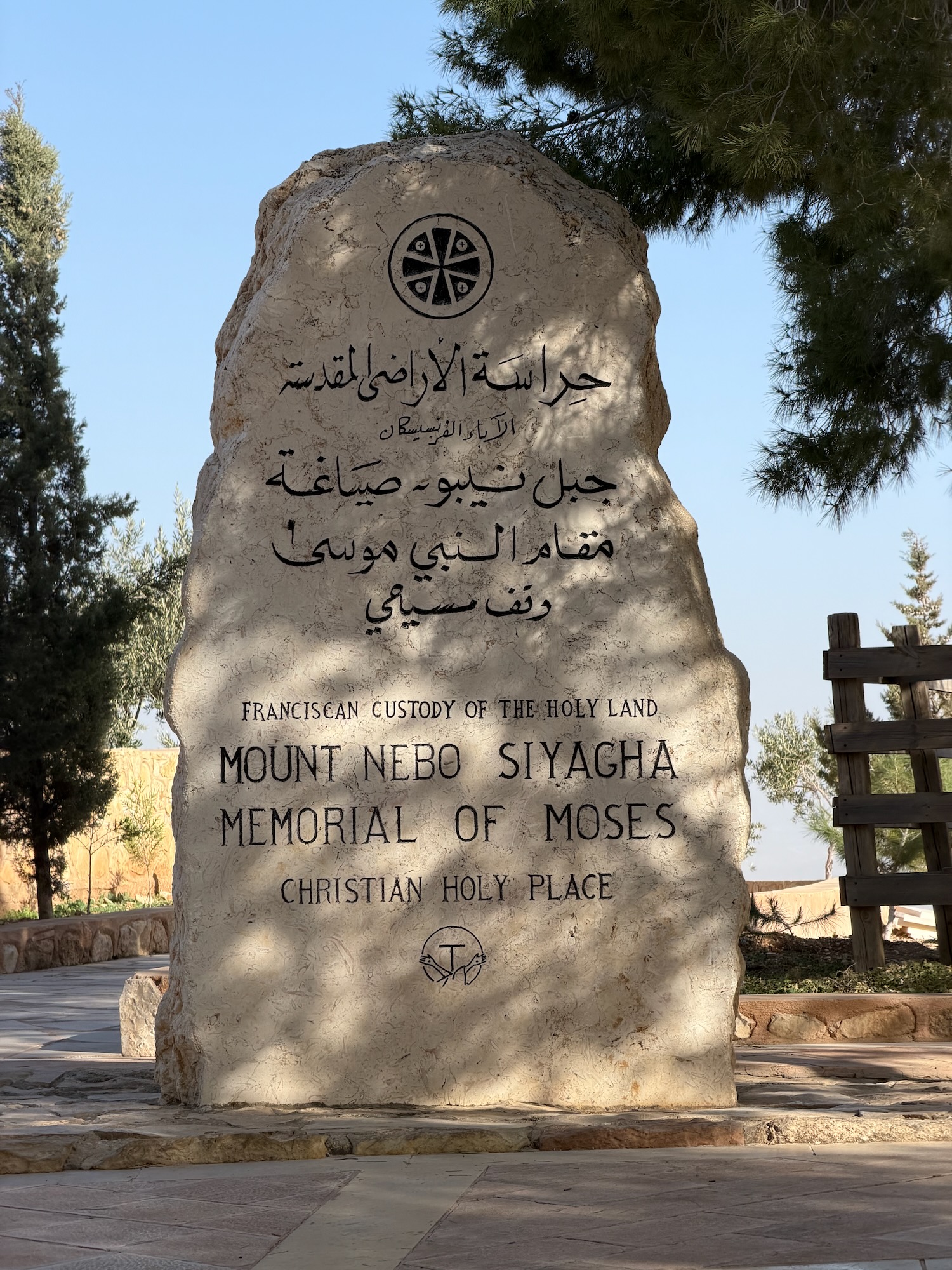 Today we were driven an interesting way from Amman to Petra, first stopping at Mount Nebo: “mentioned in the Bible as the place where Moses was granted a view of the Promised Land before his death … provides a panorama of the West Bank across the Jordan River valley …. Jericho is usually visible from the summit, as is Jerusalem on a very clear day“. It wasn’t a clear day for our visit.