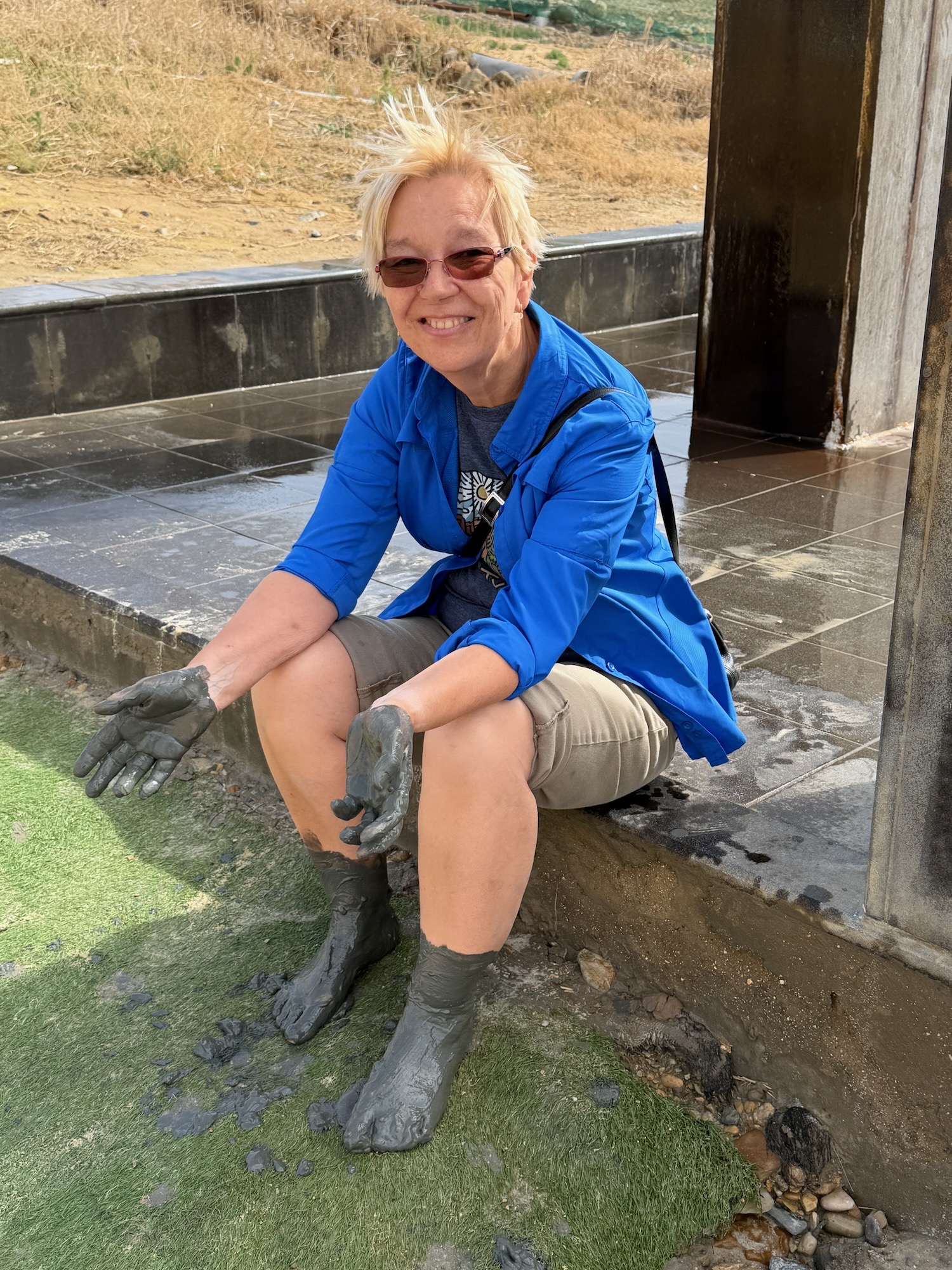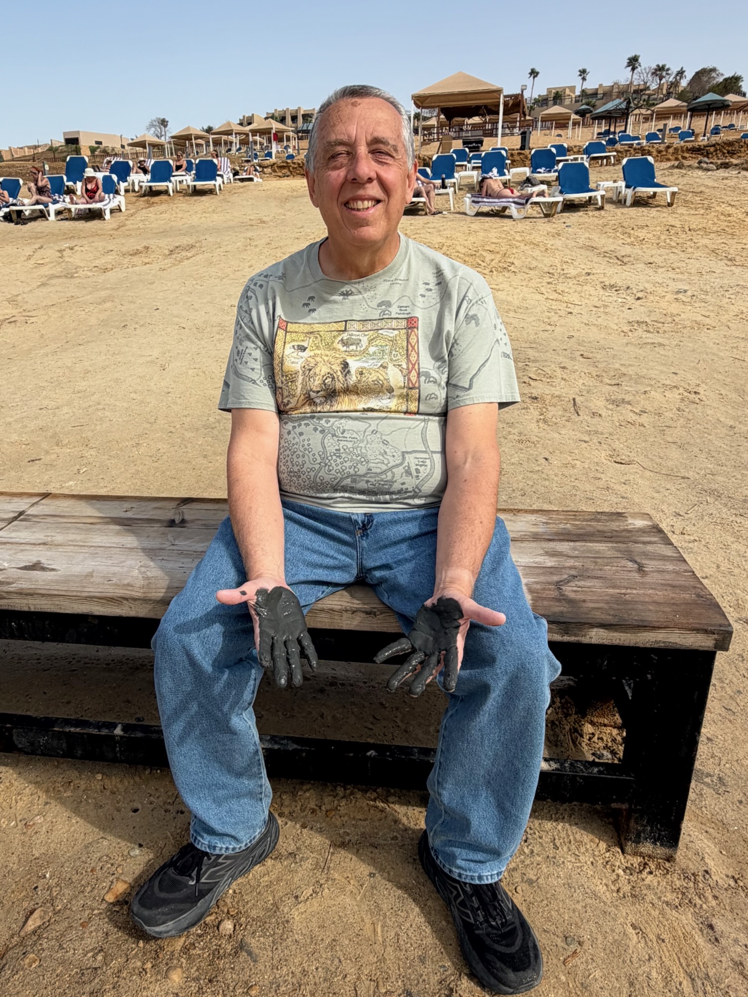 We drove further south, to the Dead Sea! We stopped at a resort which offered access to the water, Dead Sea Mud to play with, and a nice lunch buffet.