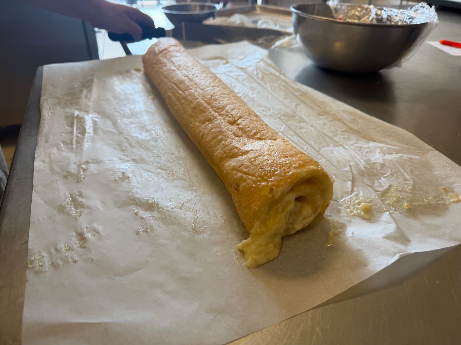 The lemon tarts were of course more than they could be – Stefan always wants to teach and today we had five maybe six steps before the final assembly (and the order in the workshop was different for time management). The workshop included making sweet pastry dough, genoise sponge, lime jelly, lemon/lime cream filling, and Italian meringue. The photos below give an idea of what we spent the afternoon doing …