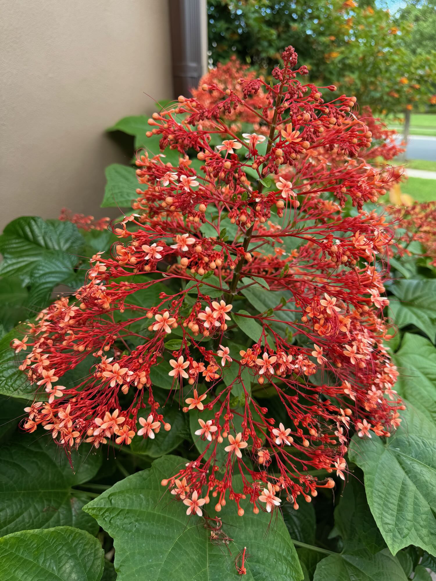 Unusual flowers on this plant that Margaret has growing in two places in our garden, this year …