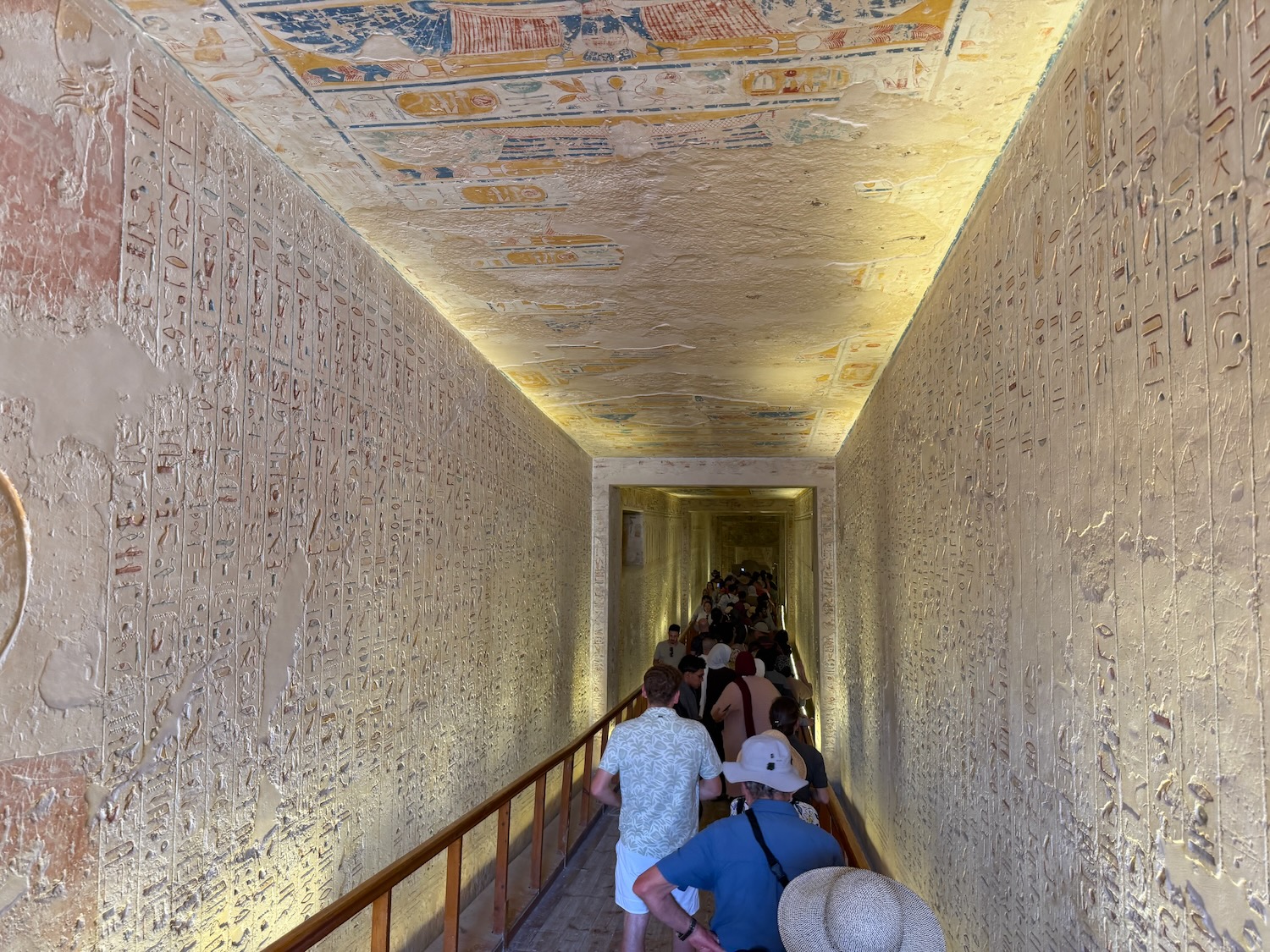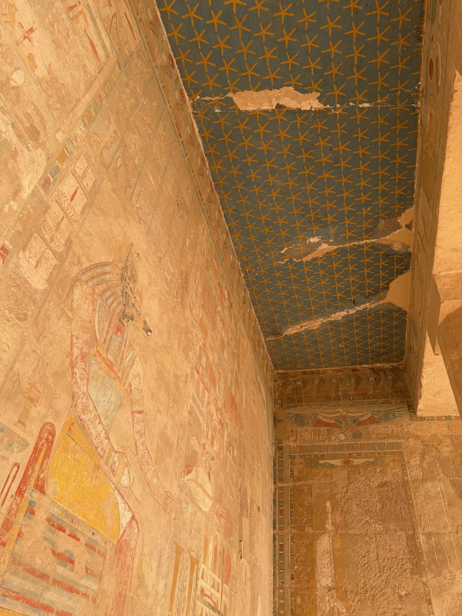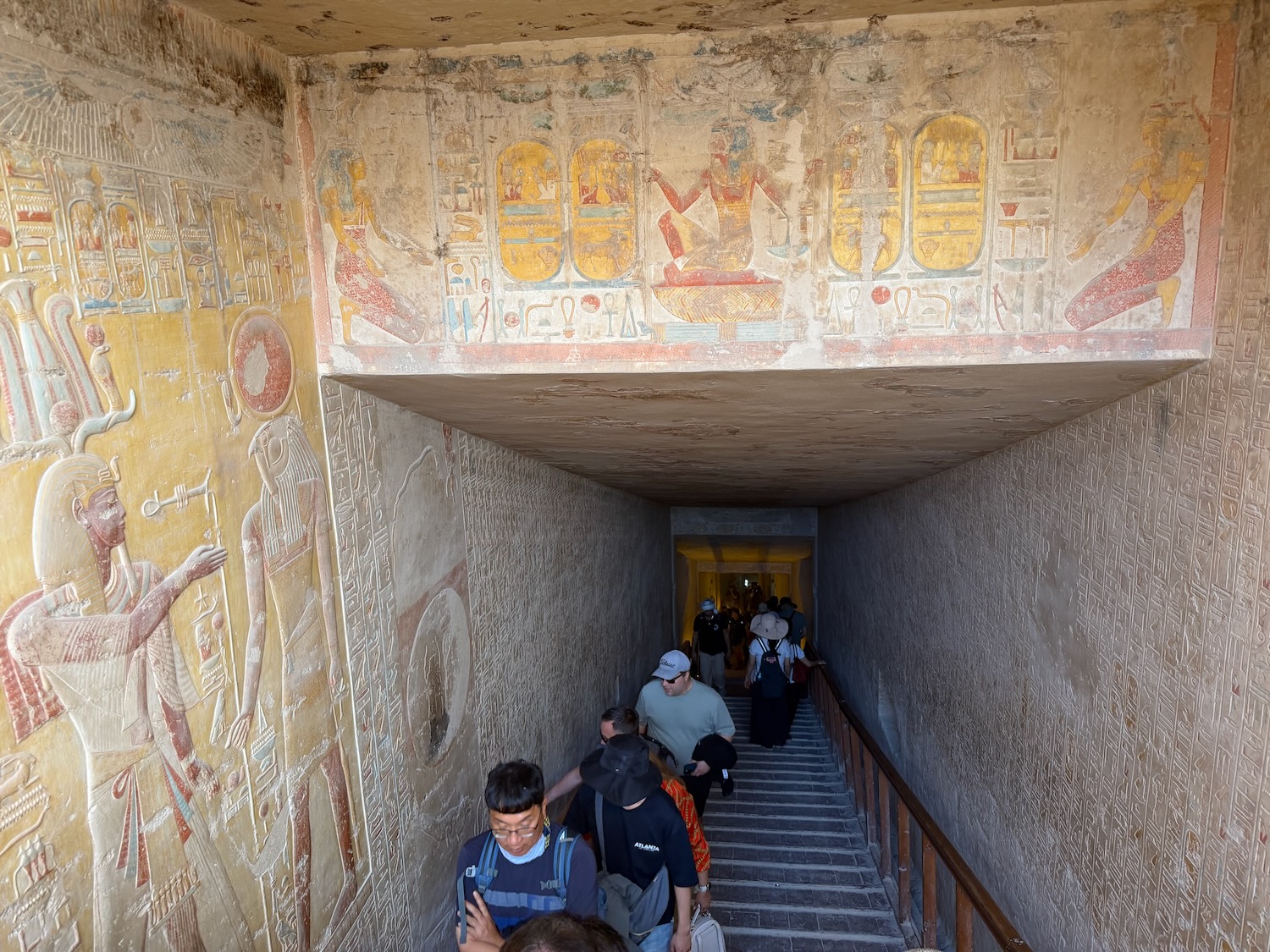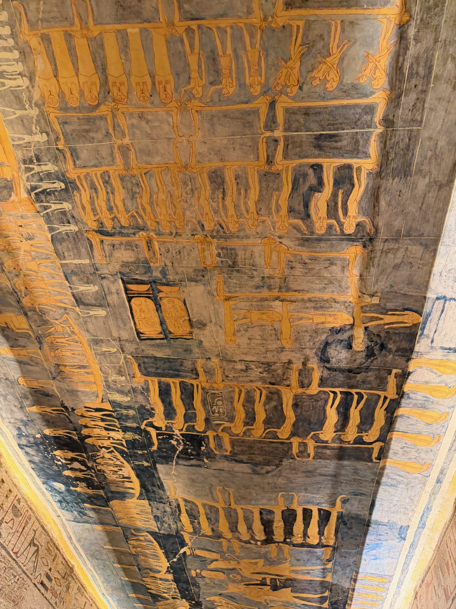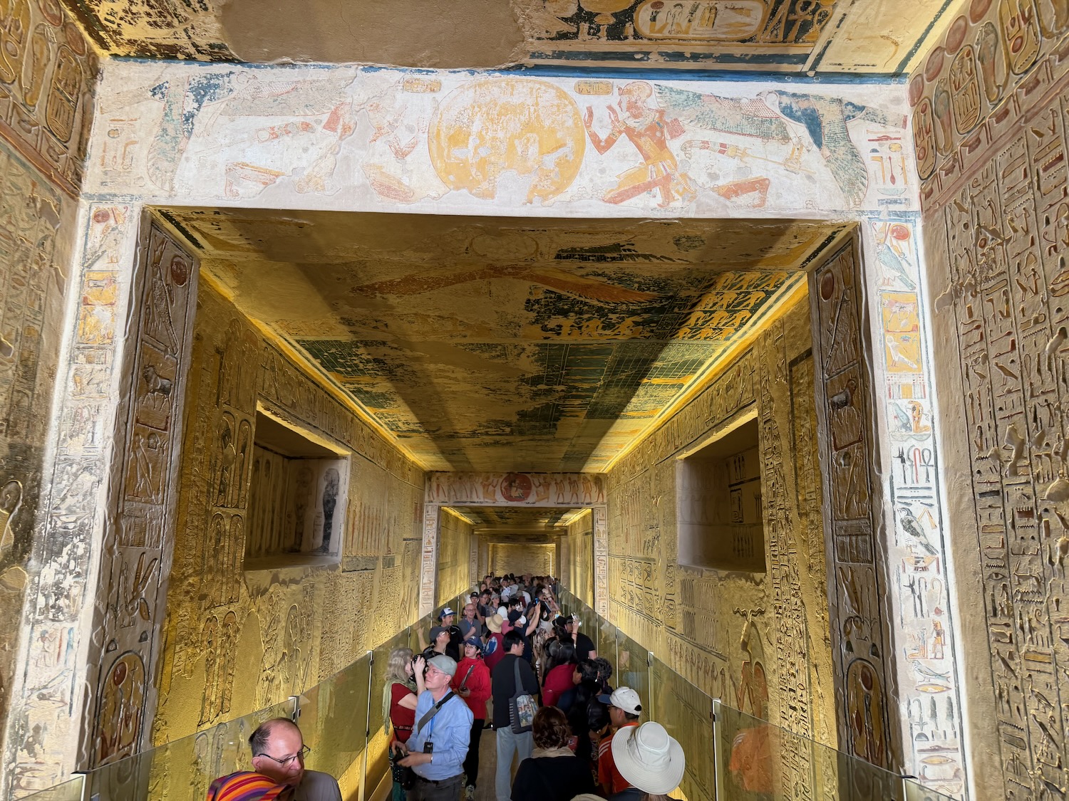 There were a number of “broken through” tomb chambers available to crawl into for a few dollars, and so I did. Of course there’s no coffin or grave goods there any more but the walls are amazingly covered in story art and other pictures … the passages are quite easy to stand up in, the only challenge is getting through the “break through” which is maybe just a couple feet wide to minimize smashing the temple walls!