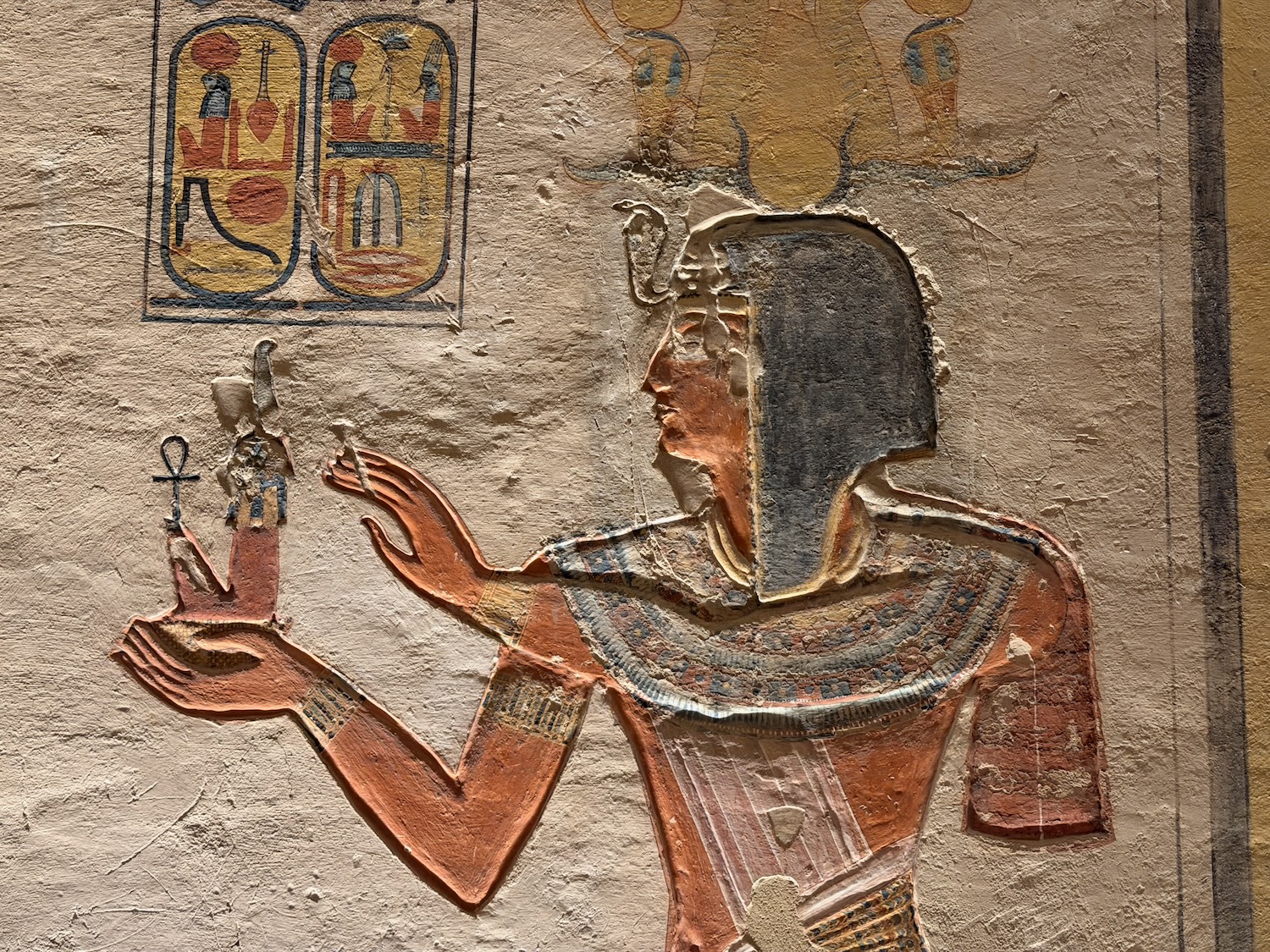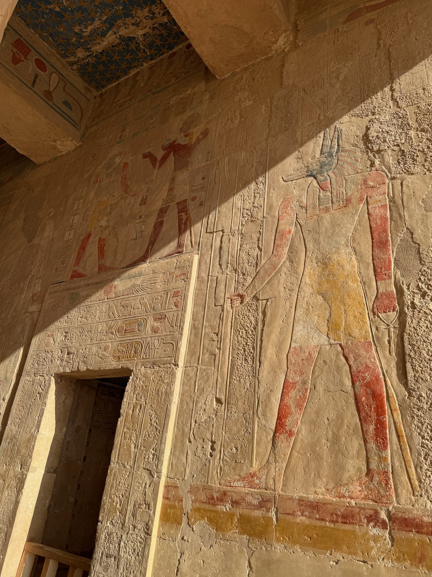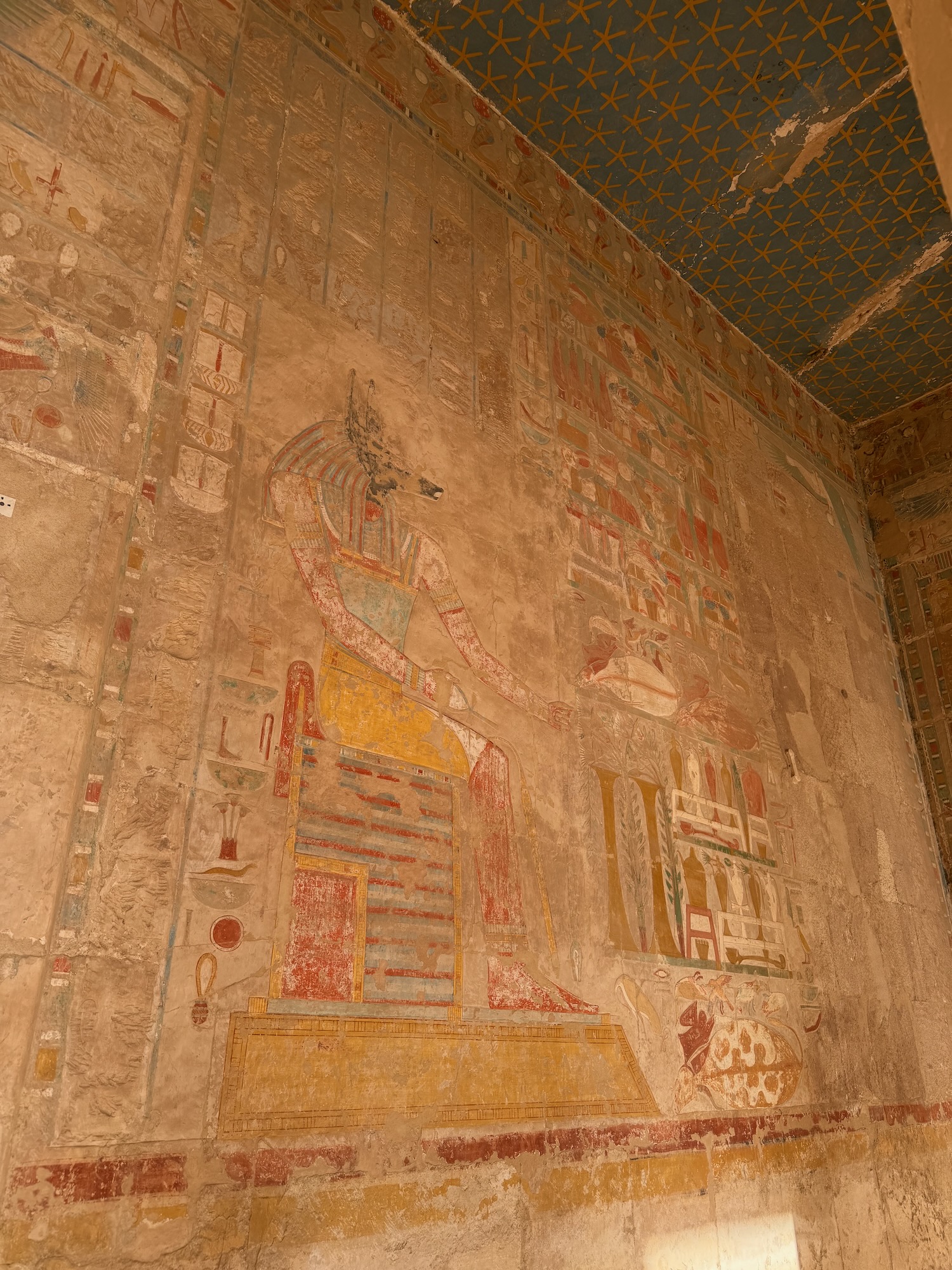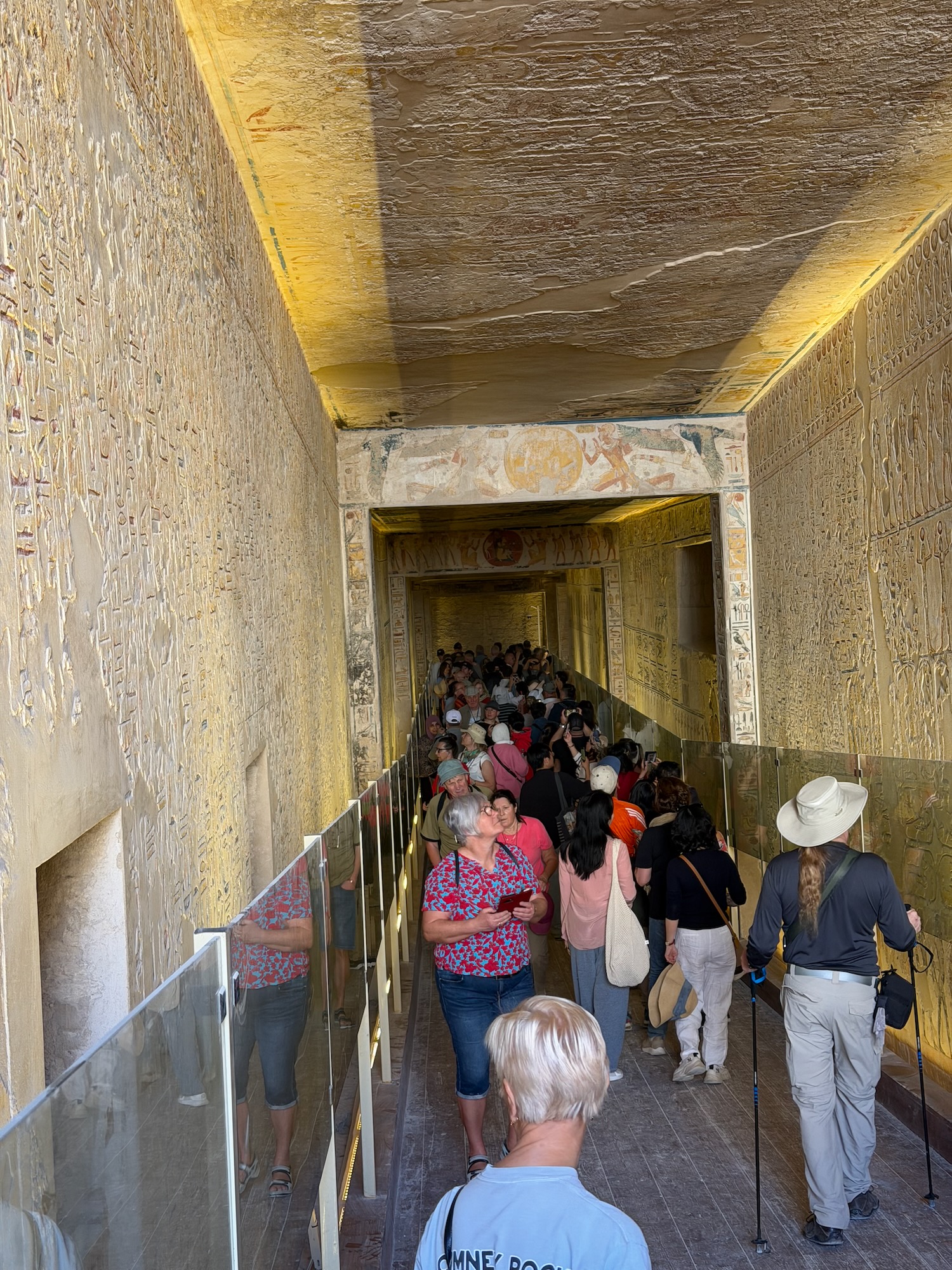 There were a number of “broken through” tomb chambers available to crawl into for a few dollars, and so I did. Of course there’s no coffin or grave goods there any more but the walls are amazingly covered in story art and other pictures … the passages are quite easy to stand up in, the only challenge is getting through the “break through” which is maybe just a couple feet wide to minimize smashing the temple walls!