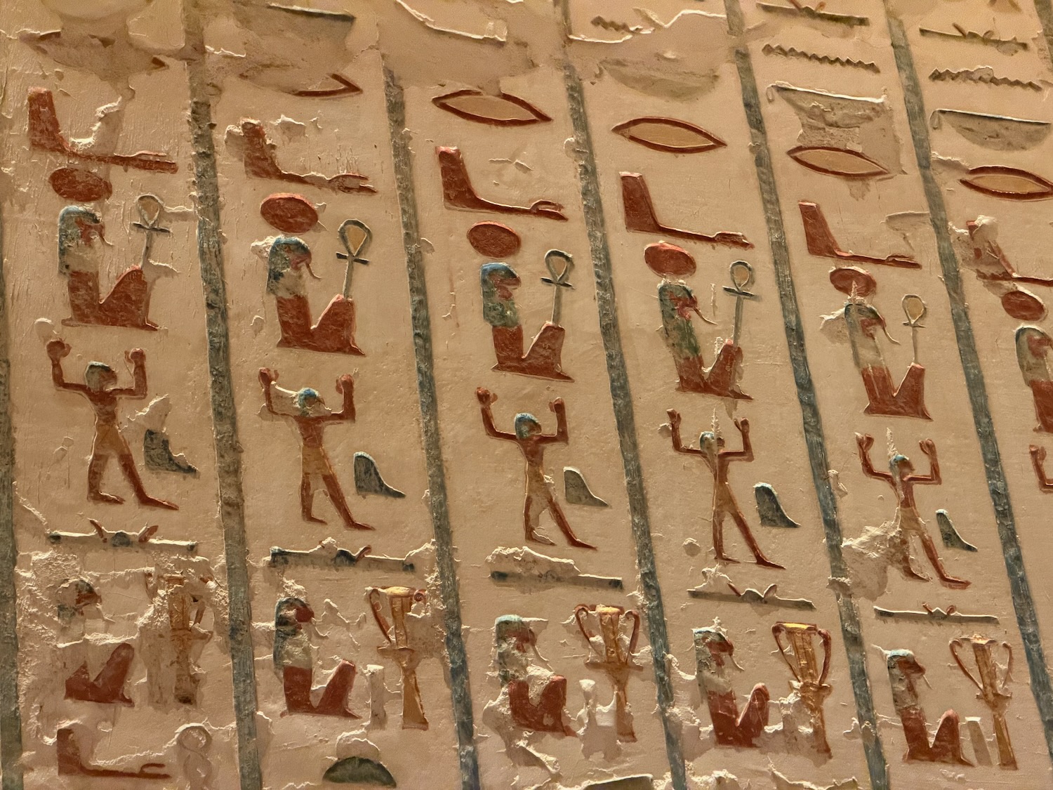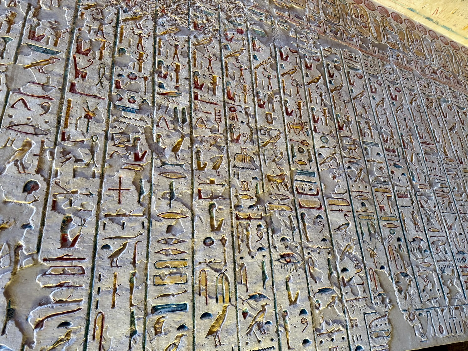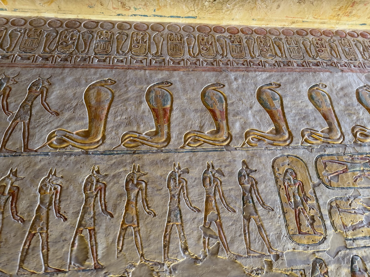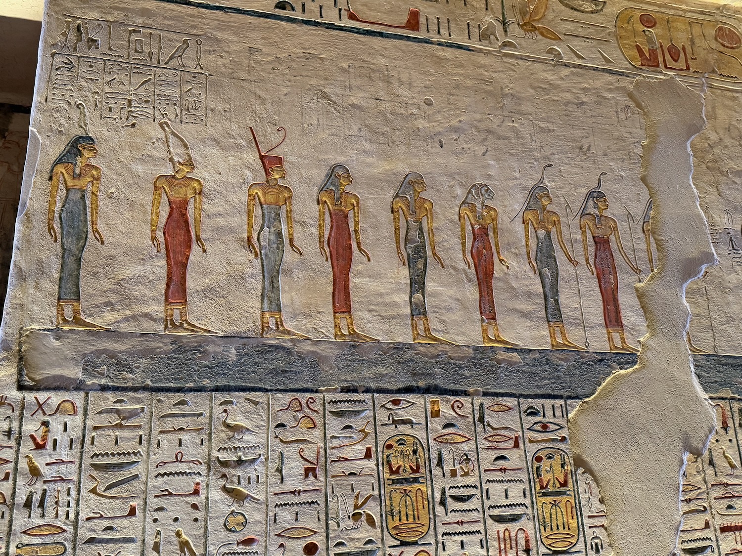 There were a number of “broken through” tomb chambers available to crawl into for a few dollars, and so I did. Of course there’s no coffin or grave goods there any more but the walls are amazingly covered in story art and other pictures … the passages are quite easy to stand up in, the only challenge is getting through the “break through” which is maybe just a couple feet wide to minimize smashing the temple walls!