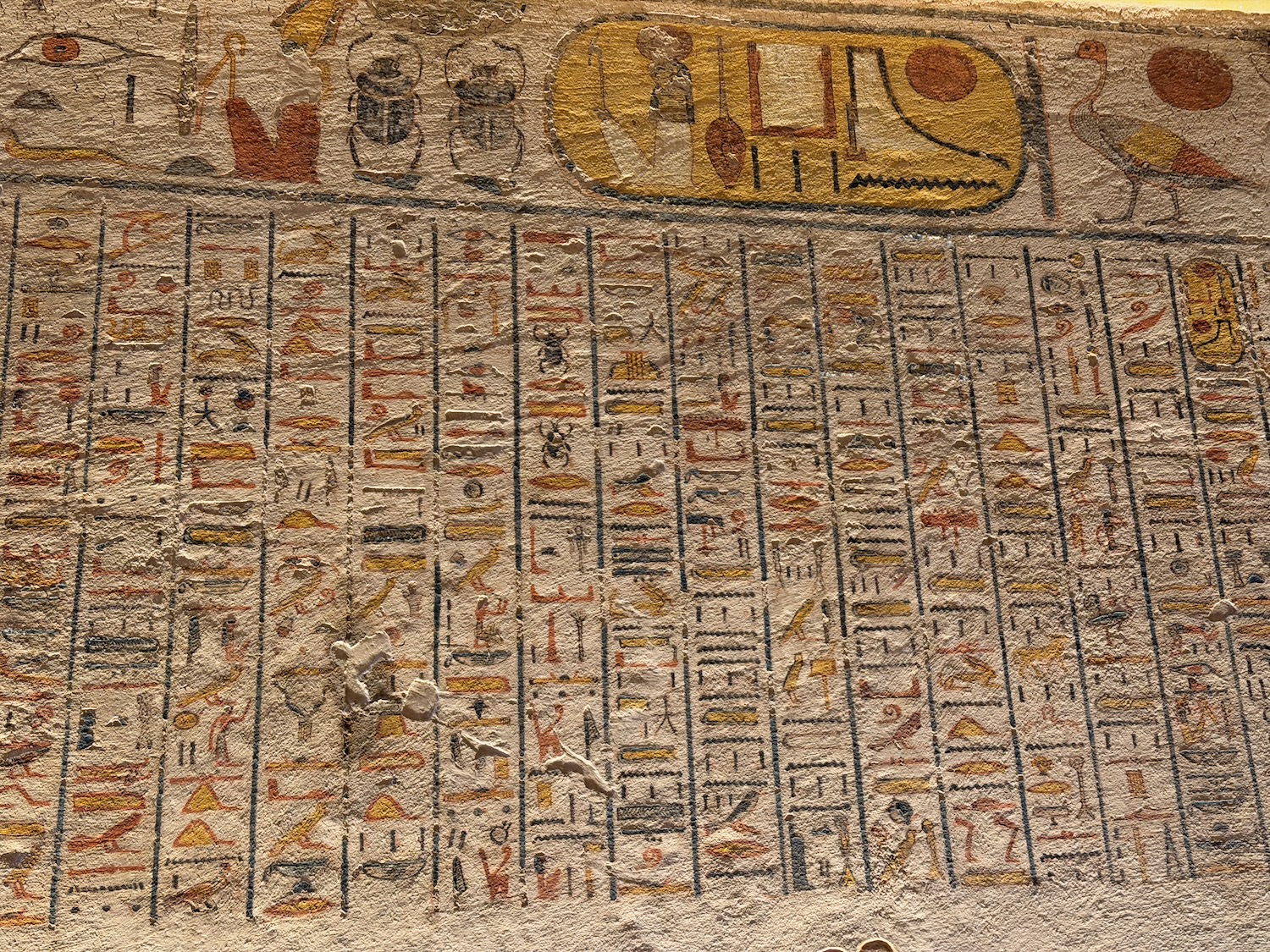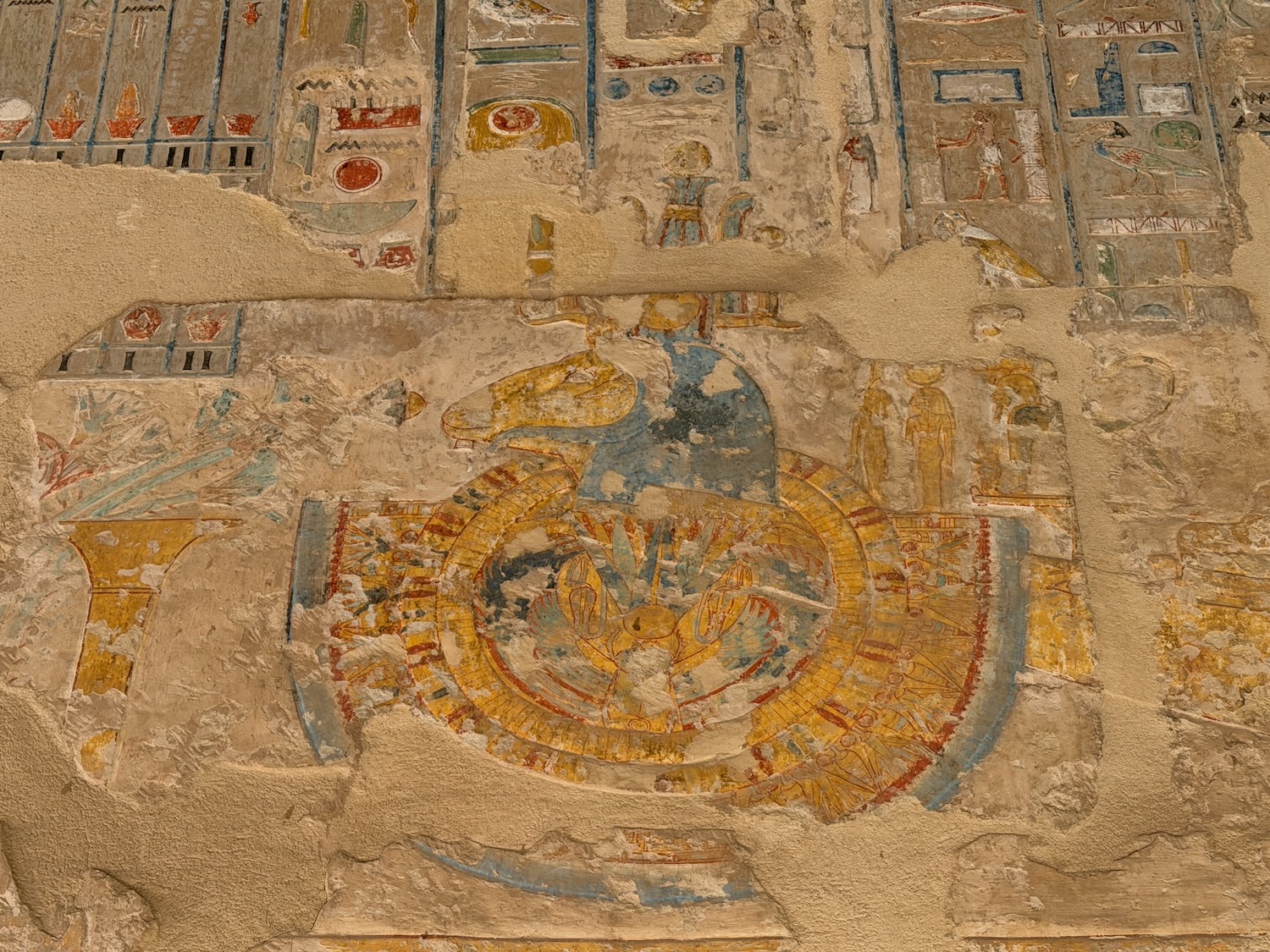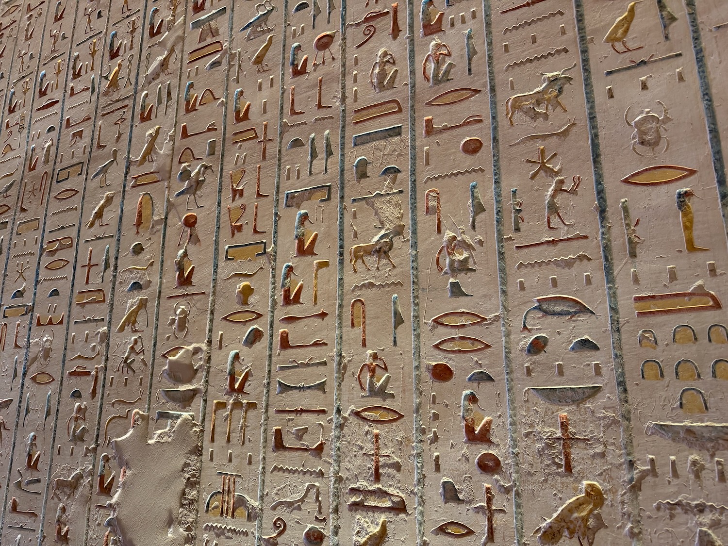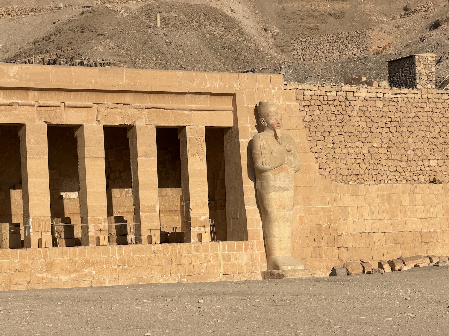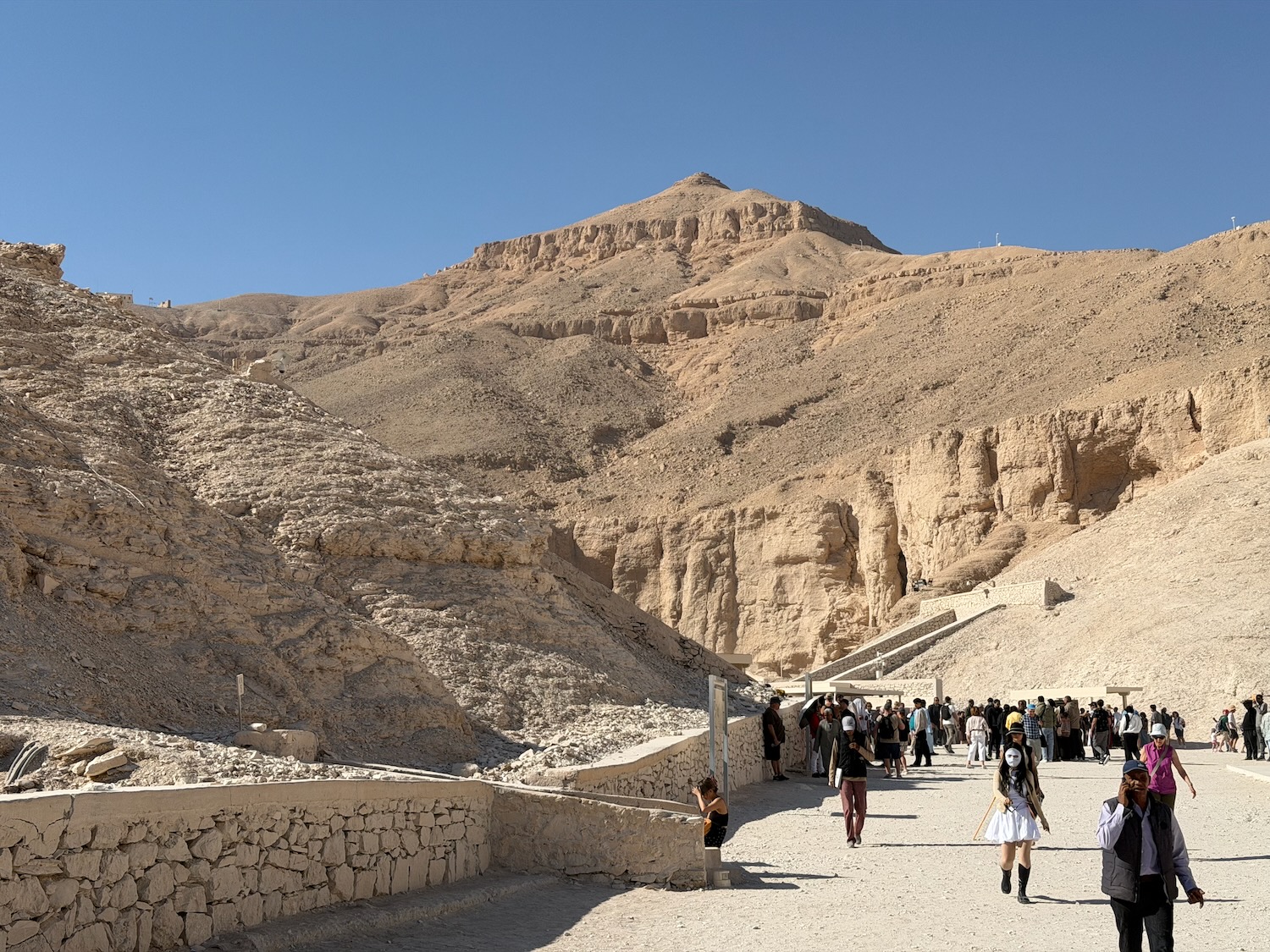 There were a number of “broken through” tomb chambers available to crawl into for a few dollars, and so I did. Of course there’s no coffin or grave goods there any more but the walls are amazingly covered in story art and other pictures … the passages are quite easy to stand up in, the only challenge is getting through the “break through” which is maybe just a couple feet wide to minimize smashing the temple walls!