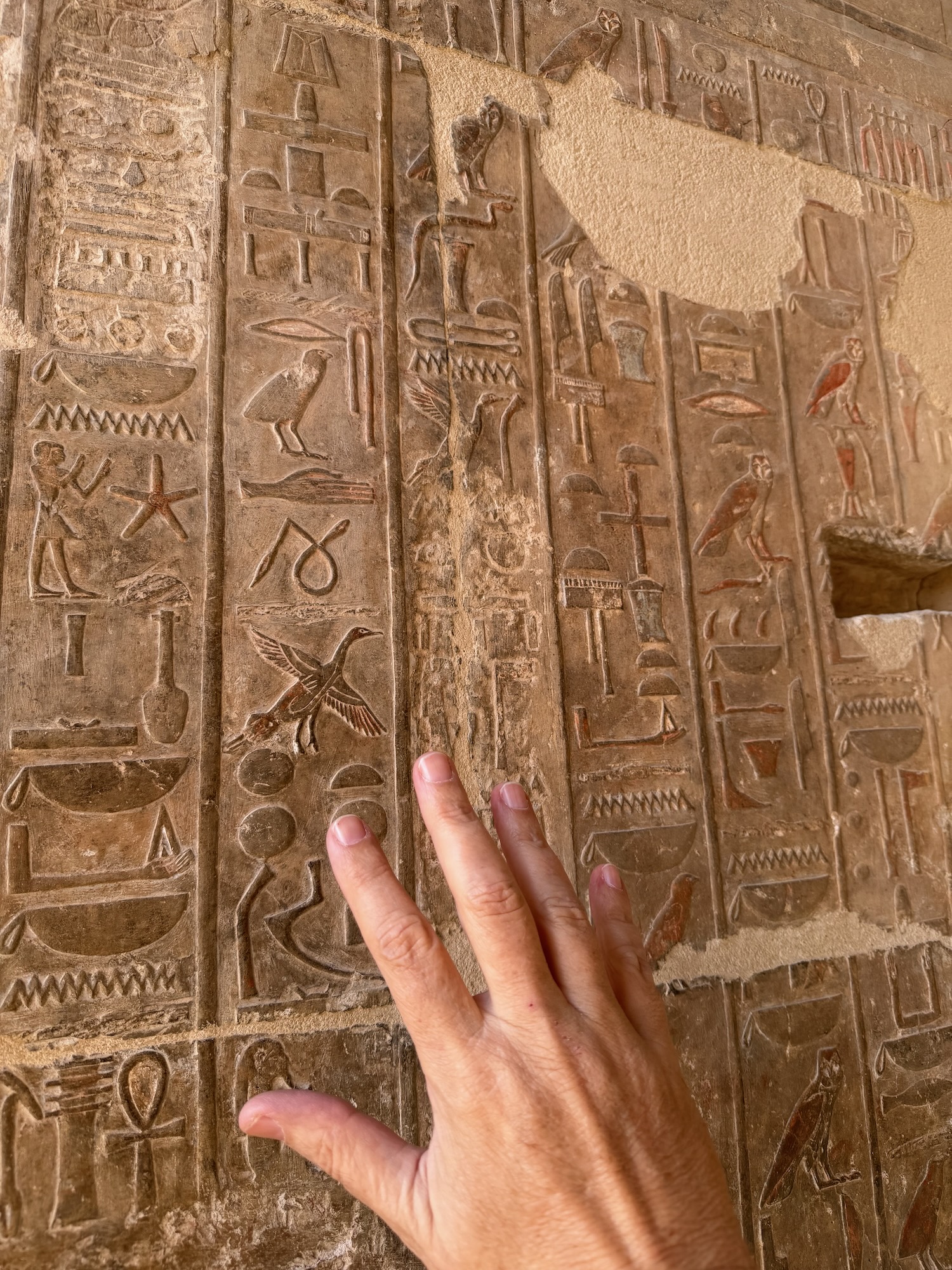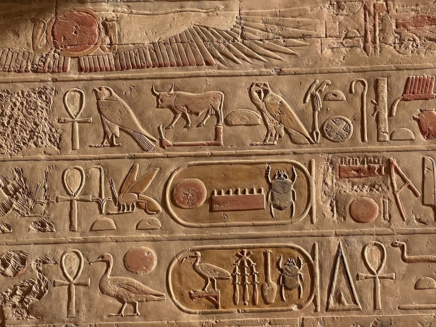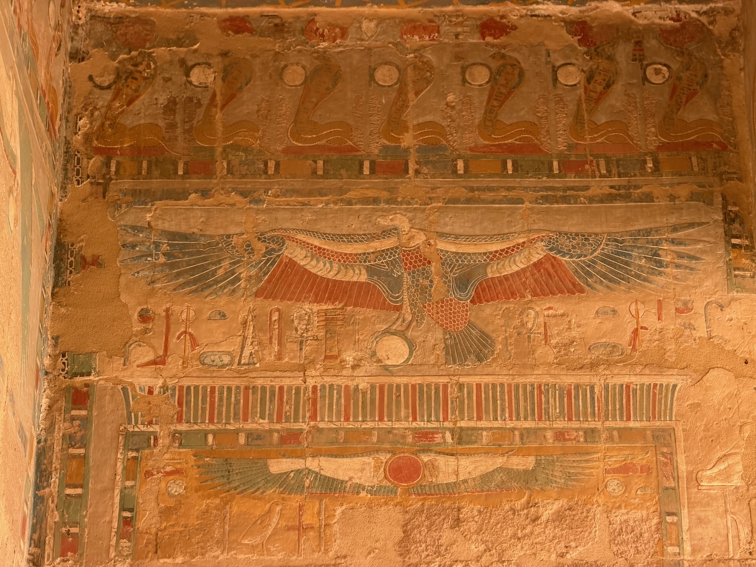 Another day, and another temple! The Dendara Temple Complex actually has multiple temples together, including some with an incredible amount of original color still present, and others where the color has been damaged mainly by smoke from people in the past that occupied the abandoned temples – there was some active restoration work in some parts.
