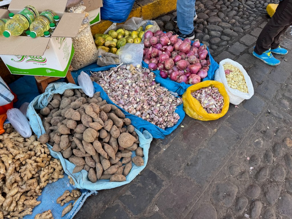 We next traveled a bit further from the city center where we rode “moto taxis” (tuk tuks?), visited a local family and shared their fabulous baked potatoes, and visited a school – and once more we stumbled on a local festival!